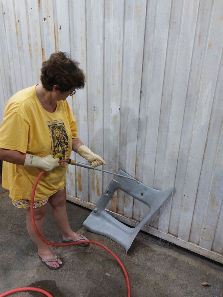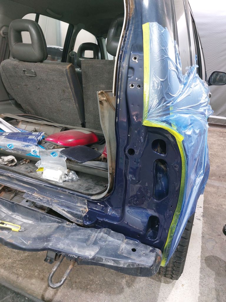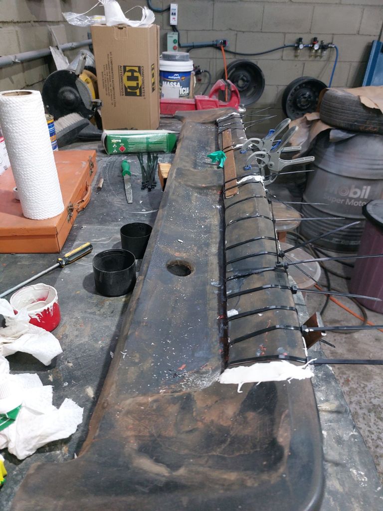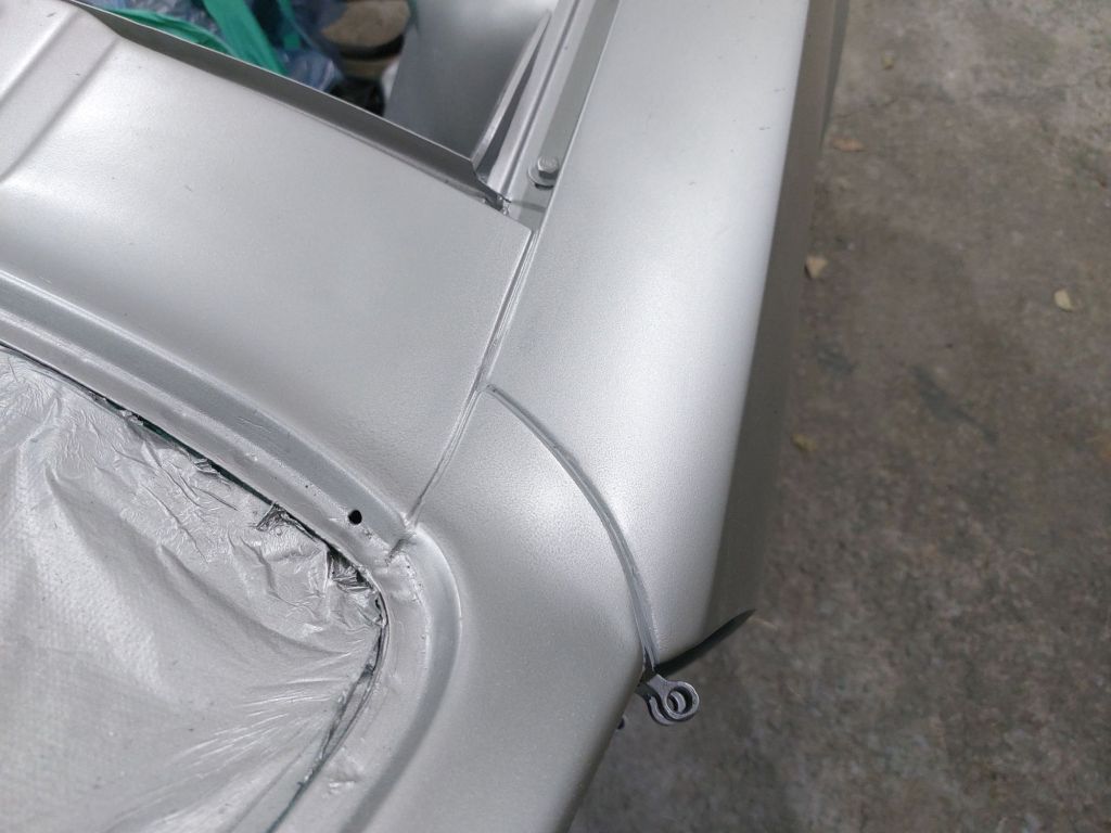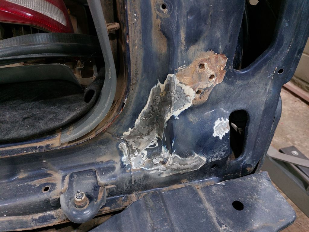 Algo que precisou ser soldado e repintado, foi onde a tampa traseira é fixada a carroceria, pois estava trincada.