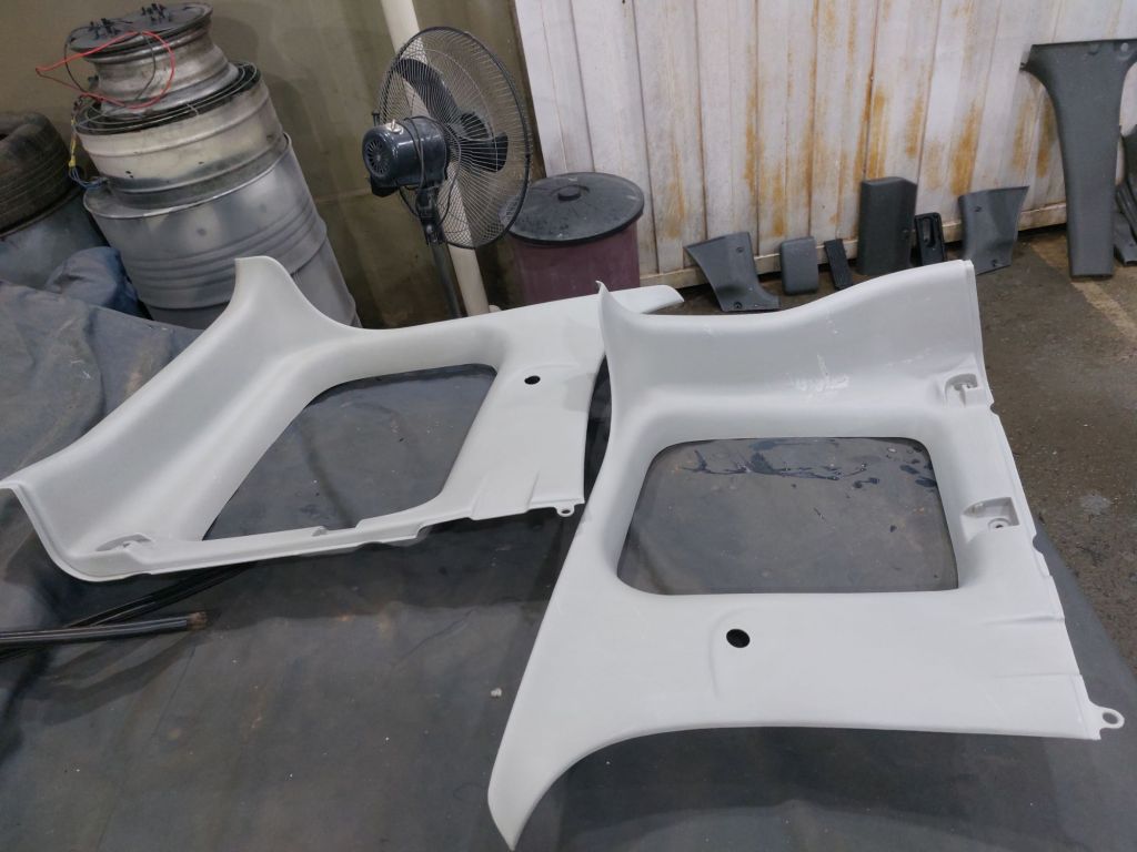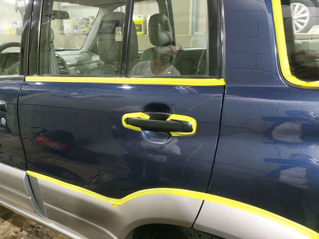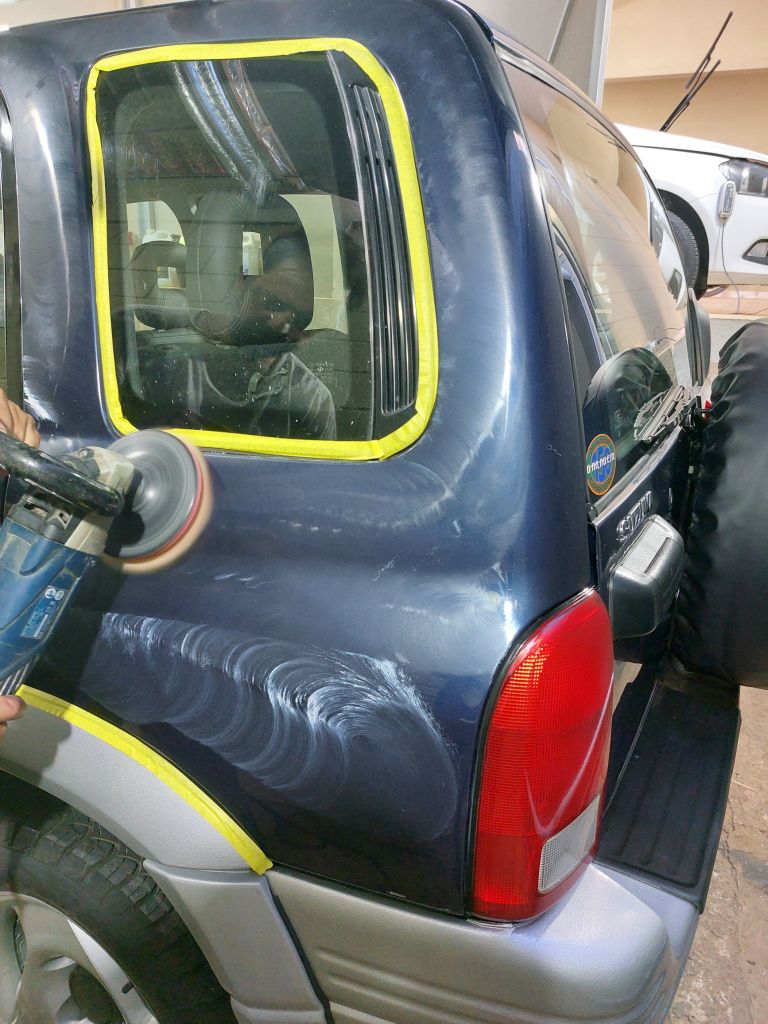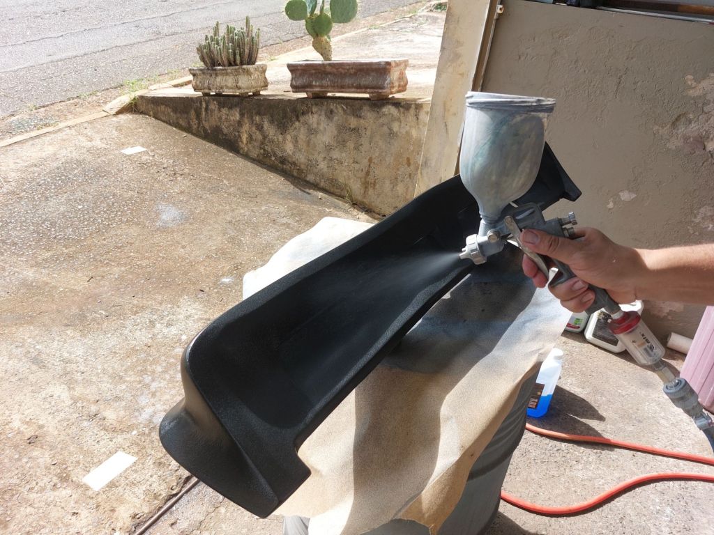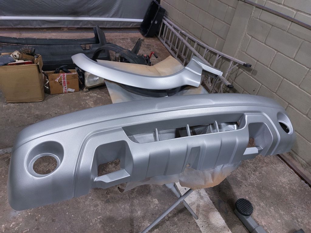 Funilaria e pintura nos acabamentos plásticos laterais e parachoques para voltar a cor e textura originais.