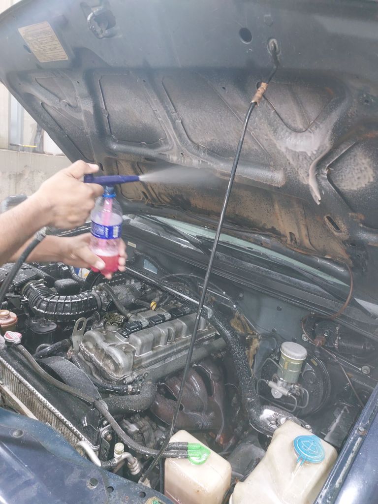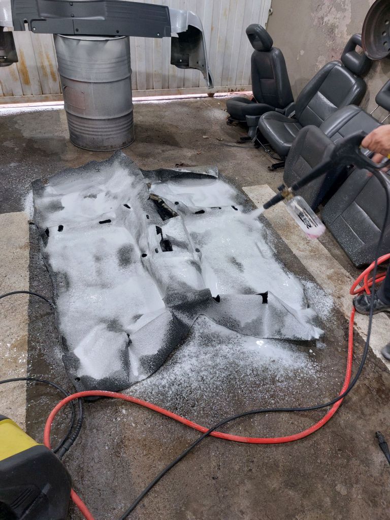 Na mecânica, fiz uma revisão bem básica, troquei as mangueiras do sistema de arrefecimento, limpamos todo o sistema, trocamos o cabo do acelerador que estava duro e cheio de gambiarras, as velas de ignição, todos os filtros, limpeza do corpo de borboleta e um “flush” para descarbonizar o motor. Comprei as correias e rolamentos, mas vi que realmente haviam sido trocados a pouco tempo, como o dono anterior havia informado. Também troquei o óleo da transmissão automática e do motor obviamente, verifiquei também o nivel do óleo da caixa de transferência e dos diferenciais traseiro e dianteiro.