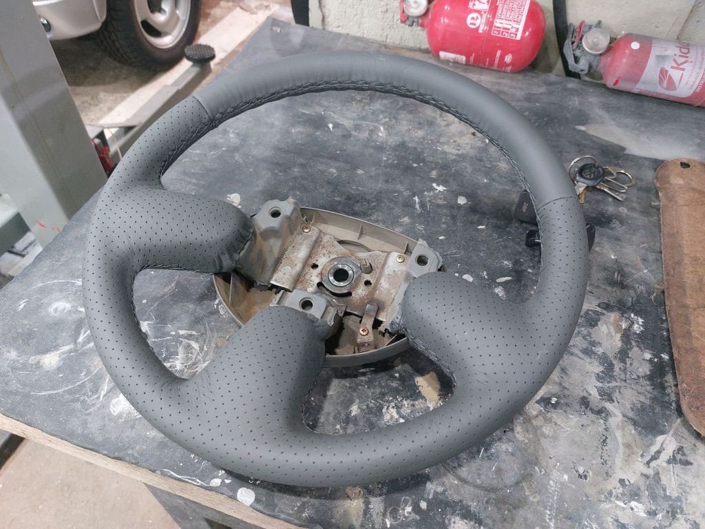 O interior original em couro, assim como as laterais internas das portas e o volante, precisaram de um novo revestimento, pois estavam ressecados e desgastados em vários pontos.