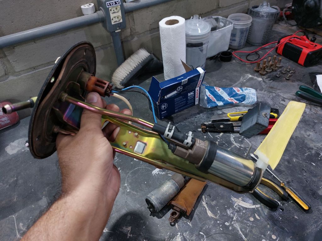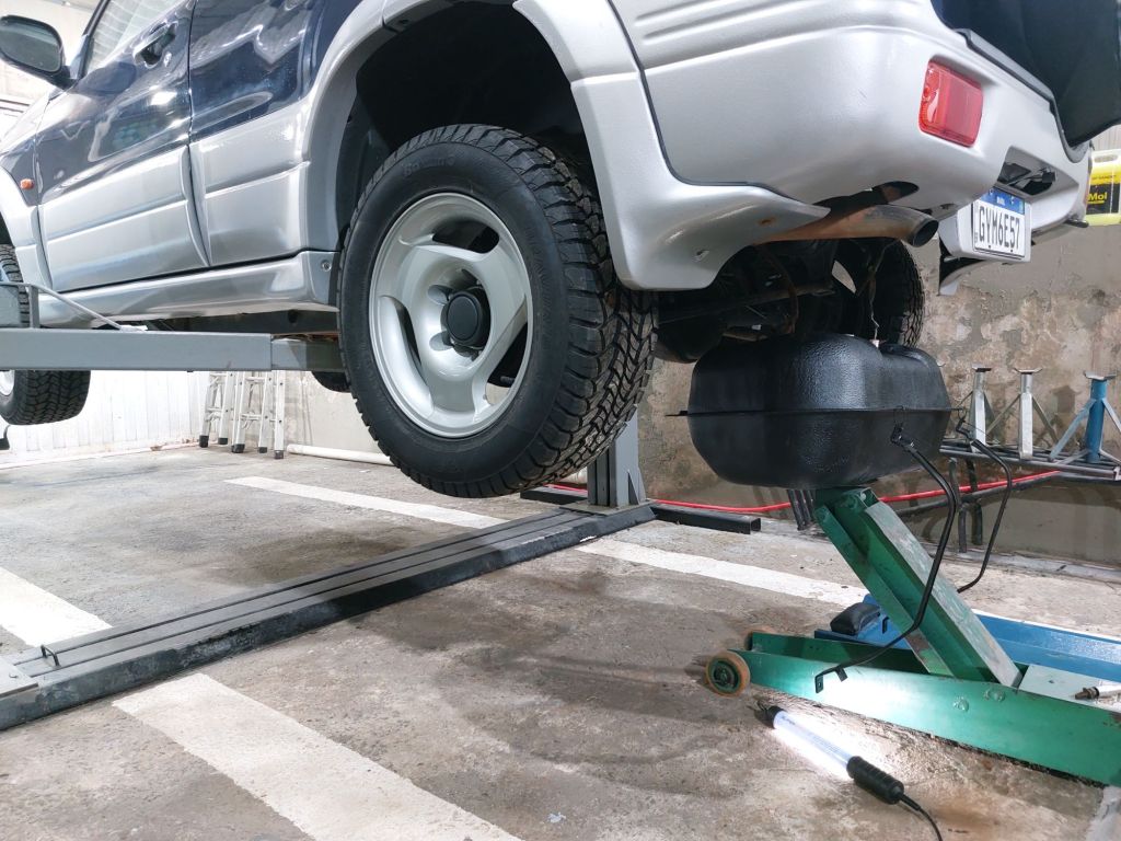 Estava tudo funcionando, até o dia que precisei manobrar o Vitara e ele não ligou, então eu e o Felipe fomos direto no problema, a bomba de combustível não estava fazendo barulho de pressurizar a linha ao virar a chave, jogamos WD40 direto na admissão e o motor ligava. Pensamos, essa foi fácil, vamos trocar a bomba de gasolina.