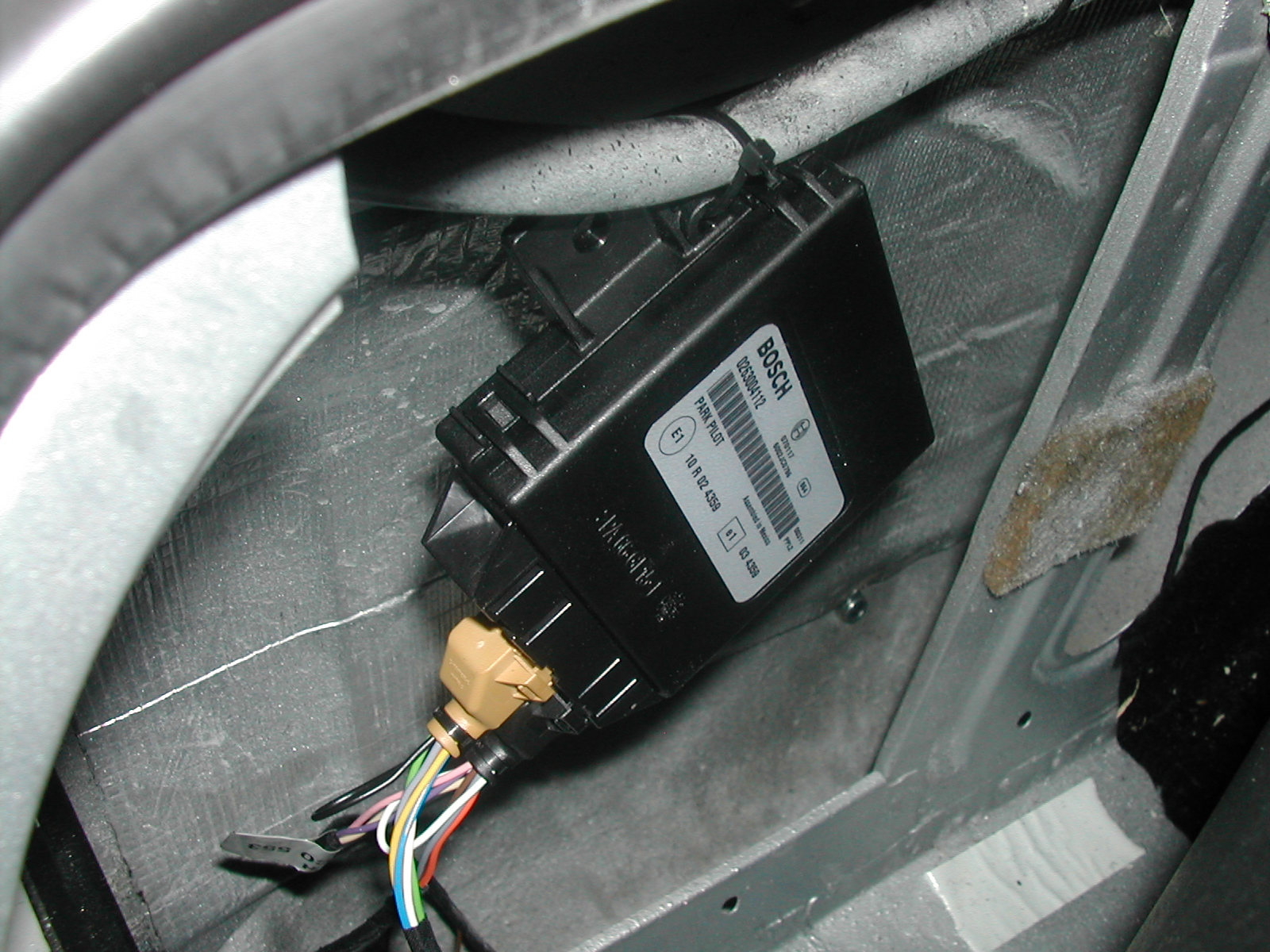 Acredito que o melhor local para fixar  a unidade de comando do park pilot (embora eu apenas prendi no chicote original) seja na lateral traseira esquerda, retirando o acabamento do portamalas.