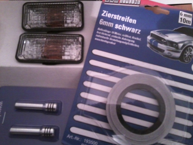 Bom, um projeto eurostyle tem que ter algo europeu, estes pinos em aluminio estão na “moda tuning” assim como estes adesivos, então achei fácil numa loja chamada A.T.U. A exclusividade estão nestes piscas para as laterais do Golf/Vento da marca “in-pro”, acessório homologado T.U.V (vem um certificado dentro da caixa) todo eurostyle troca o pisca amarelo por estes….para o Golf MK5 e MK4 tem várias cores e até as lanternas e faróis com LED, para os antiguinhos só os piscas dos paralamas mesmo.