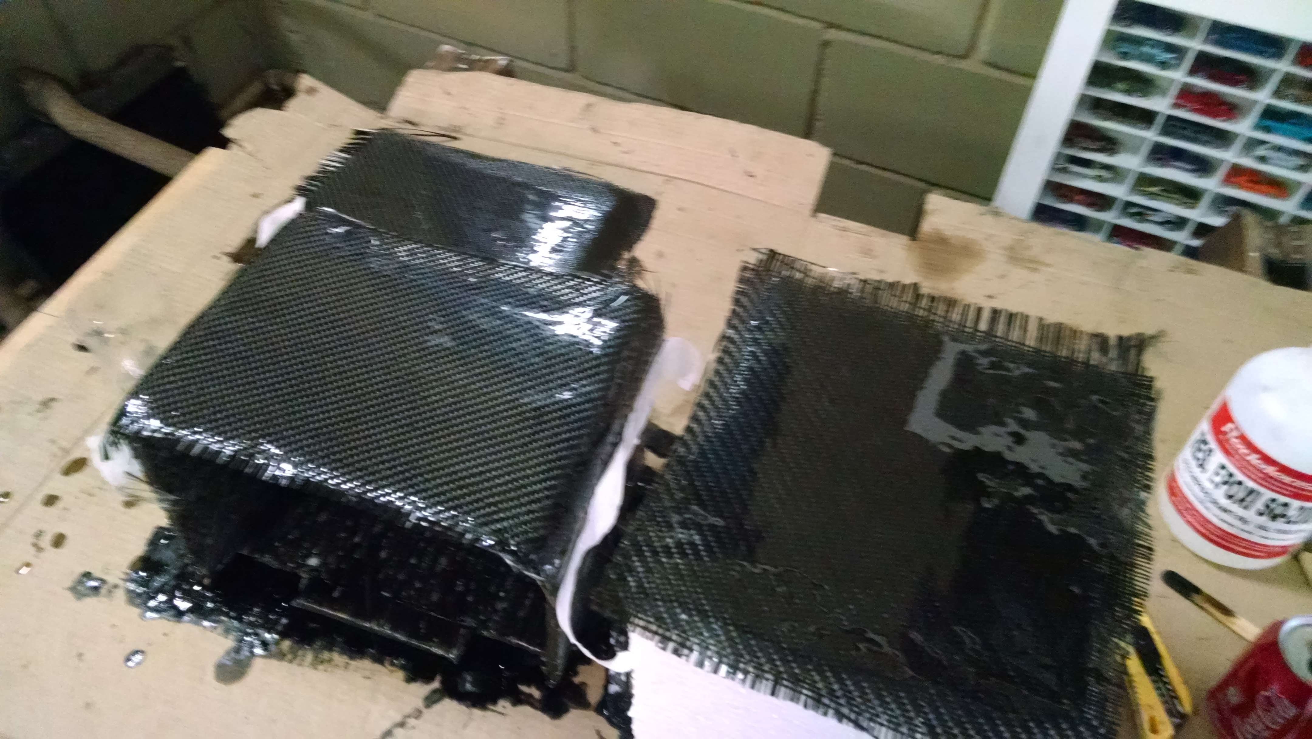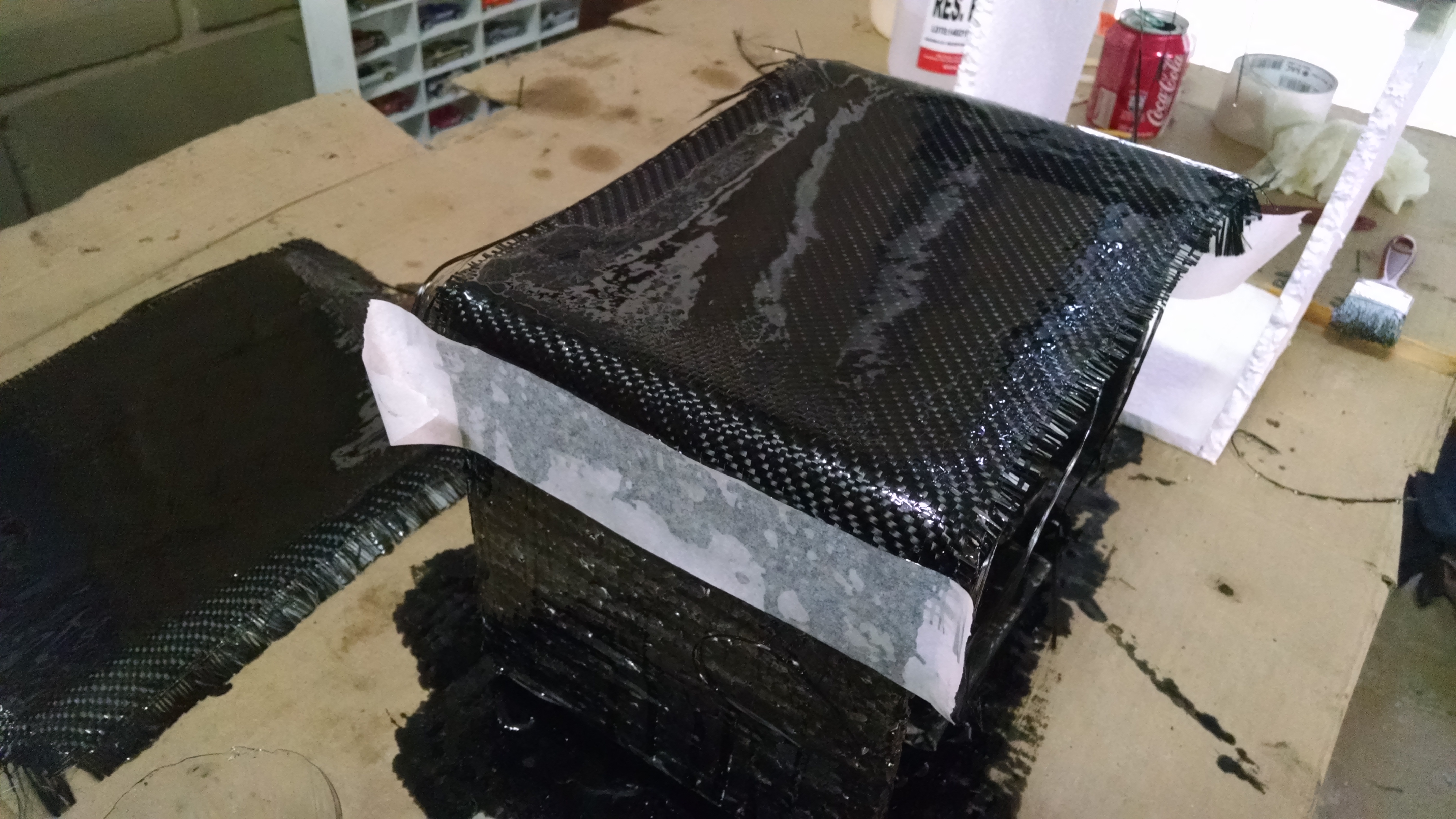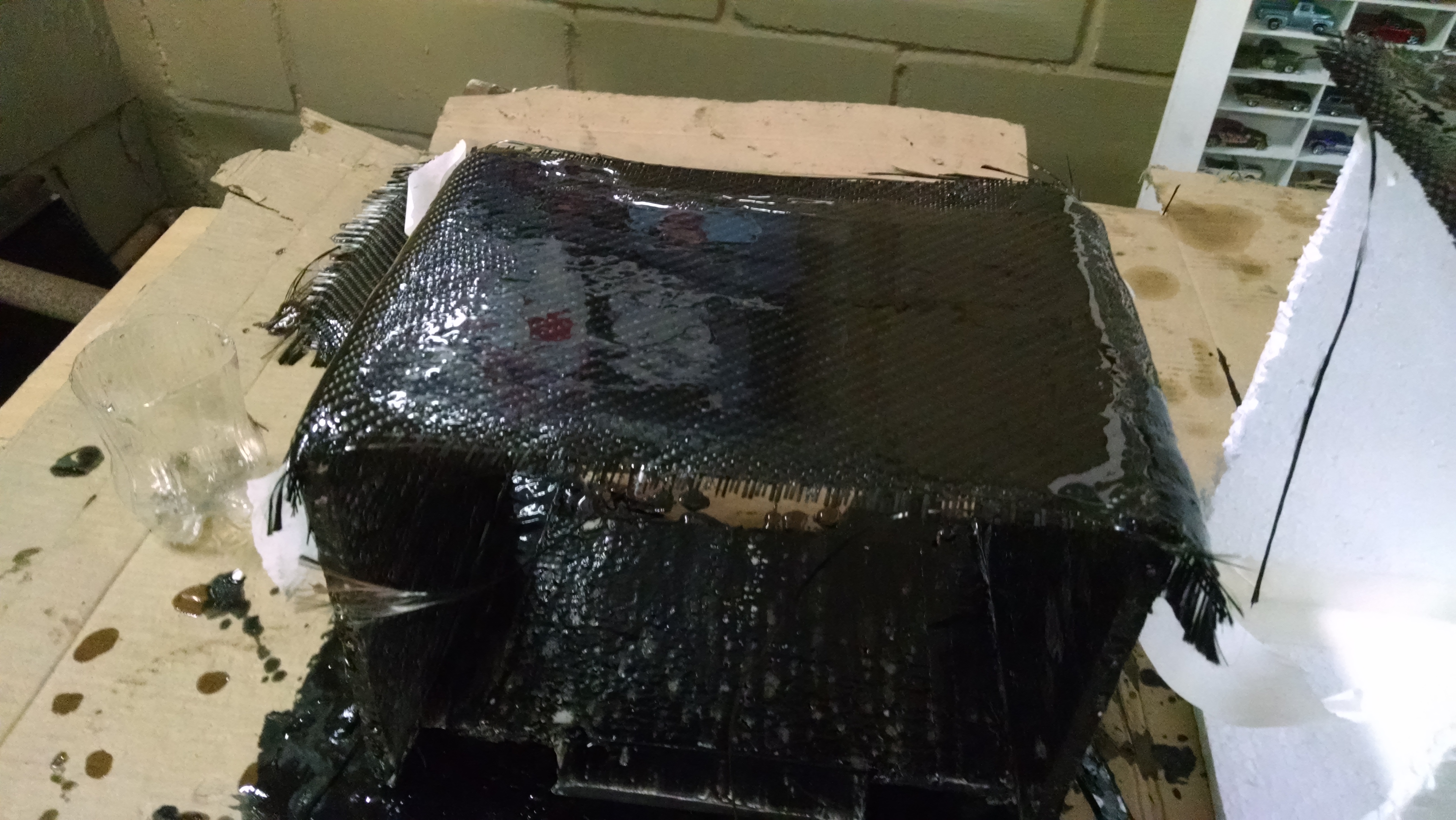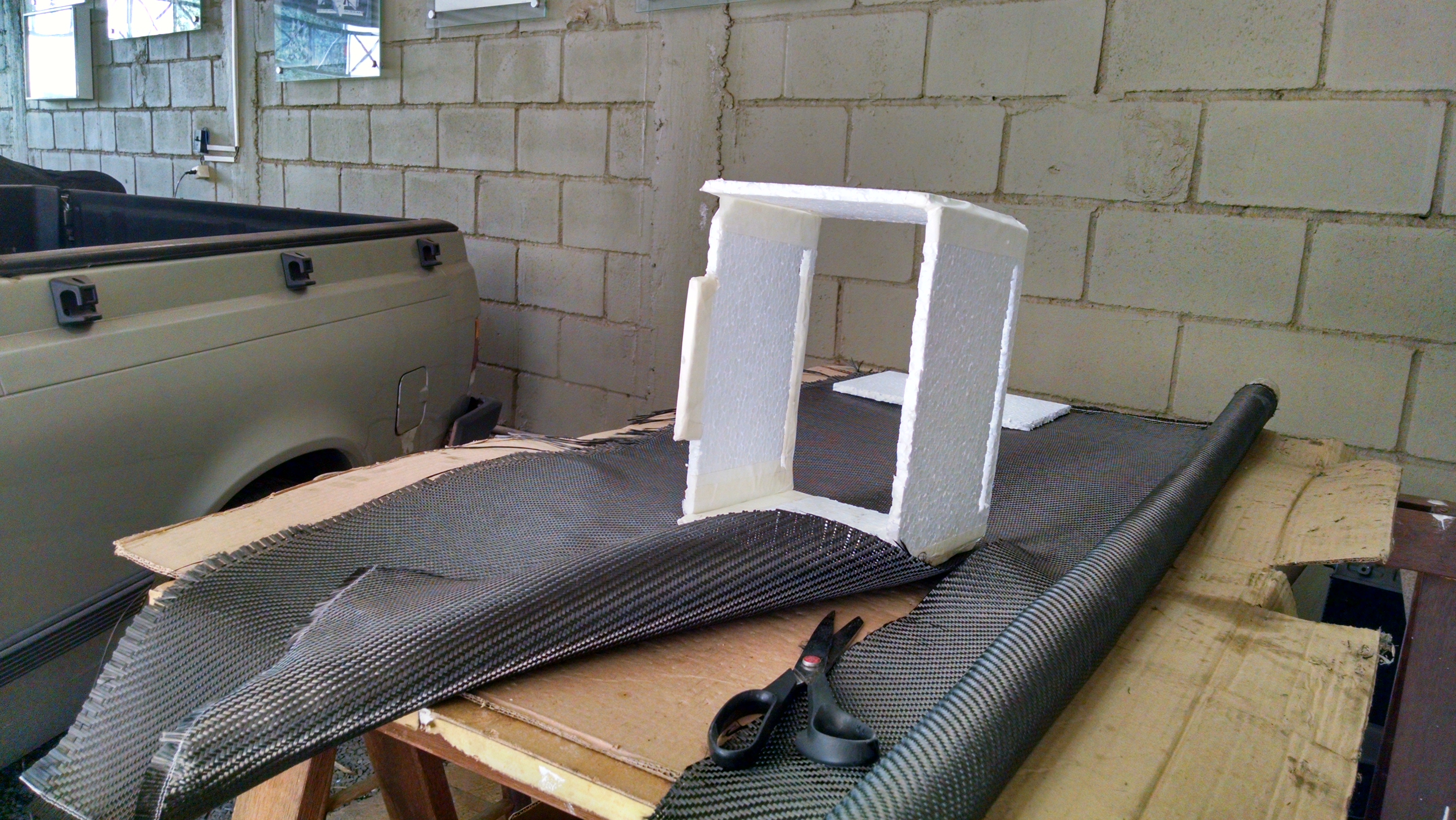 Segundo passo: Passar uma boa camada de resina epóxi, colocar o tecido/manta de fibra de vidro ou fibra de carbono e cobrir com mais resina epóxi.