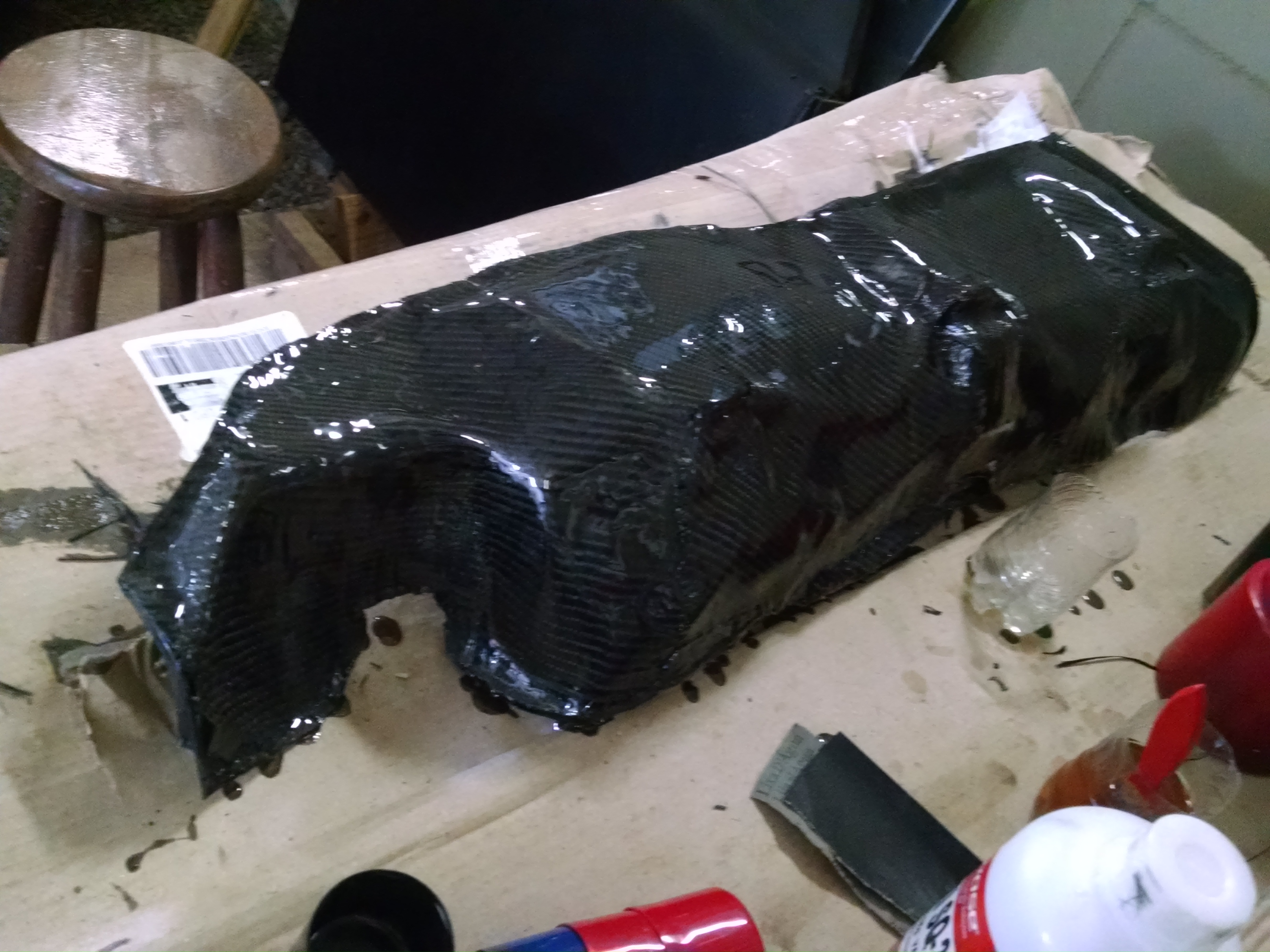 Exato, passe a resina coloque o tecido de fibra de carbono e mais resina. Faça por etapas é claro, tentando tirar todo ar entre o tecido e a peça, pressione bastante até colar. Mas, Thiago, se eu fiz, vc também faz….apenas para peças estruturais que existe a dificuldade do forno autoclave, para acabamento, basta paciência e capricho.