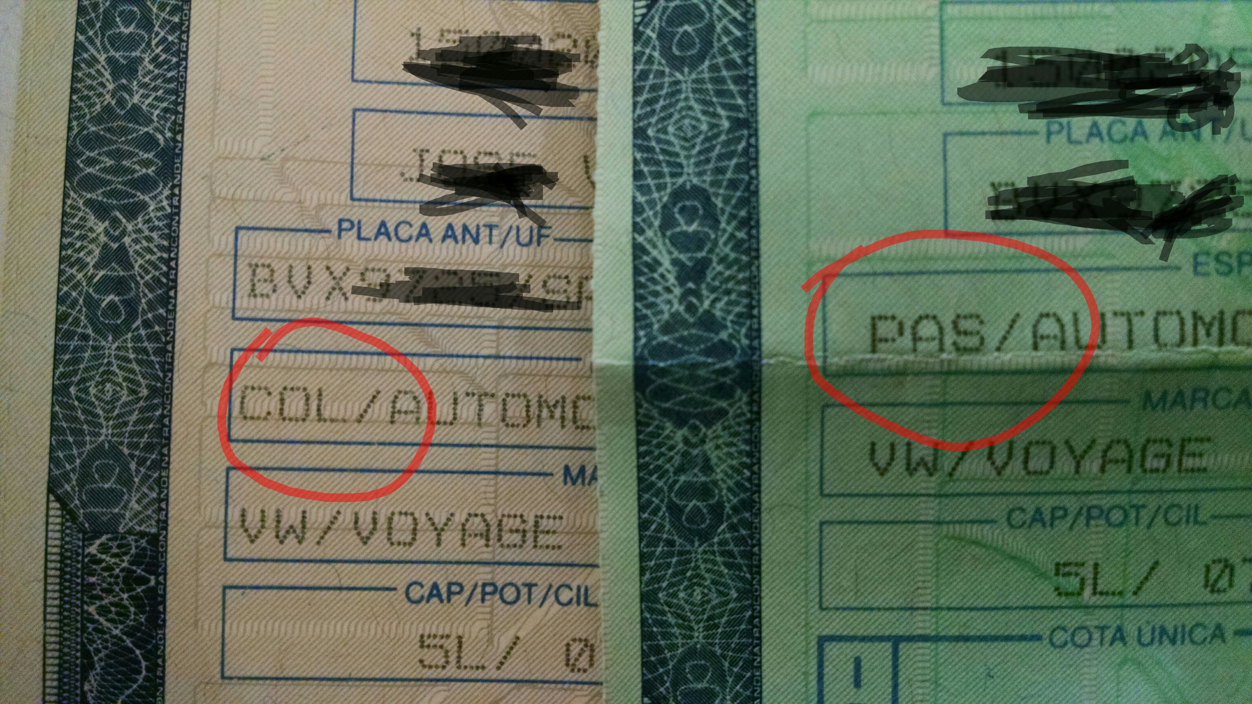 Como curiosidade, veja o que muda no documento de um carro de coleção. Eu achava que mudariam a “categoria” , mas mudaram a “espécie “.