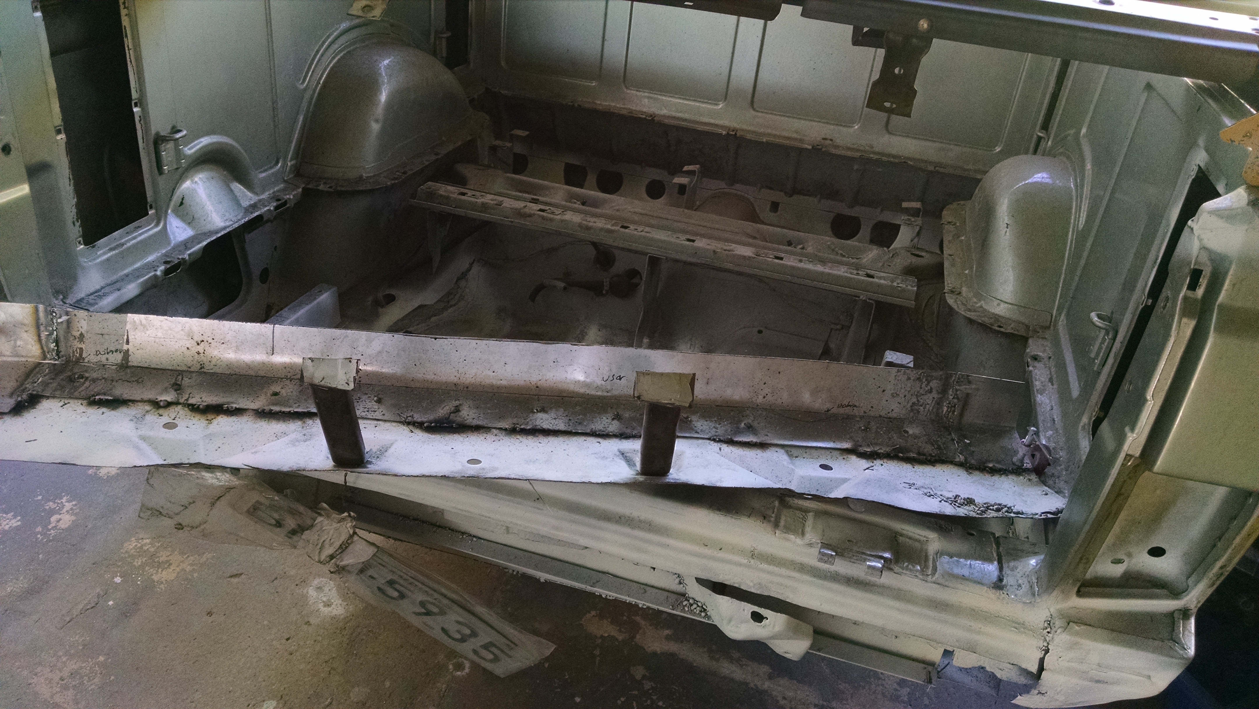 No post anterior, soldei o assoalho e fiz uma chapa de reforço interno, que estava podre (link abaixo).https://garagem150.com/2016/12/17/restaurando-minha-chevy-500-post-3/