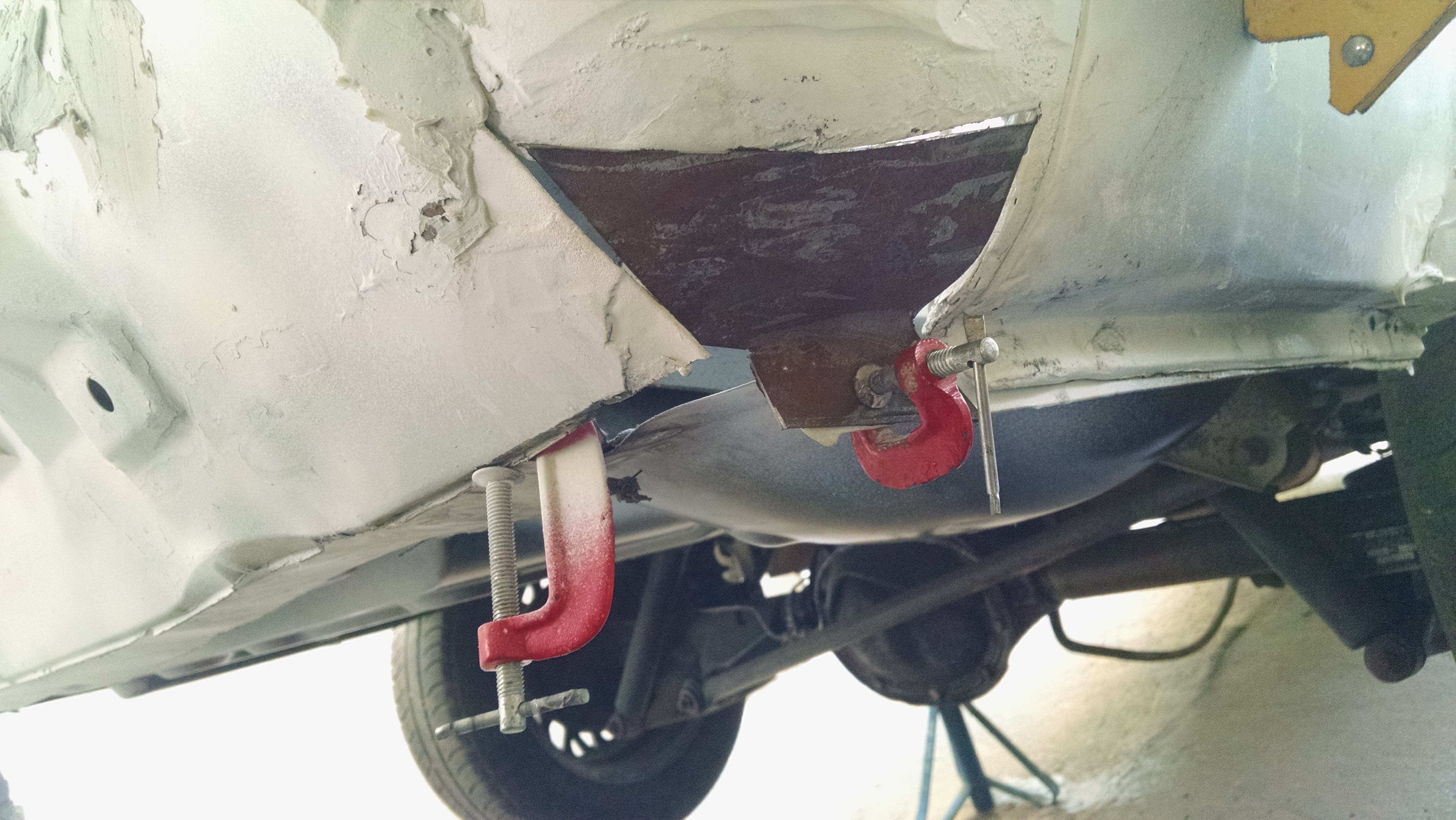 Como cortei todas as partes podres e enferrujadas, ficaram alguns buracos nos painéis, então usei a técnica de colar fita crepe e marcar um molde do remendo que precisava fazer e depois soldar (ensinamentos do Edd China – Wheeler Dealers – “jóias sobre rodas”).