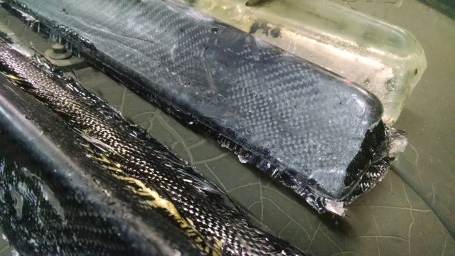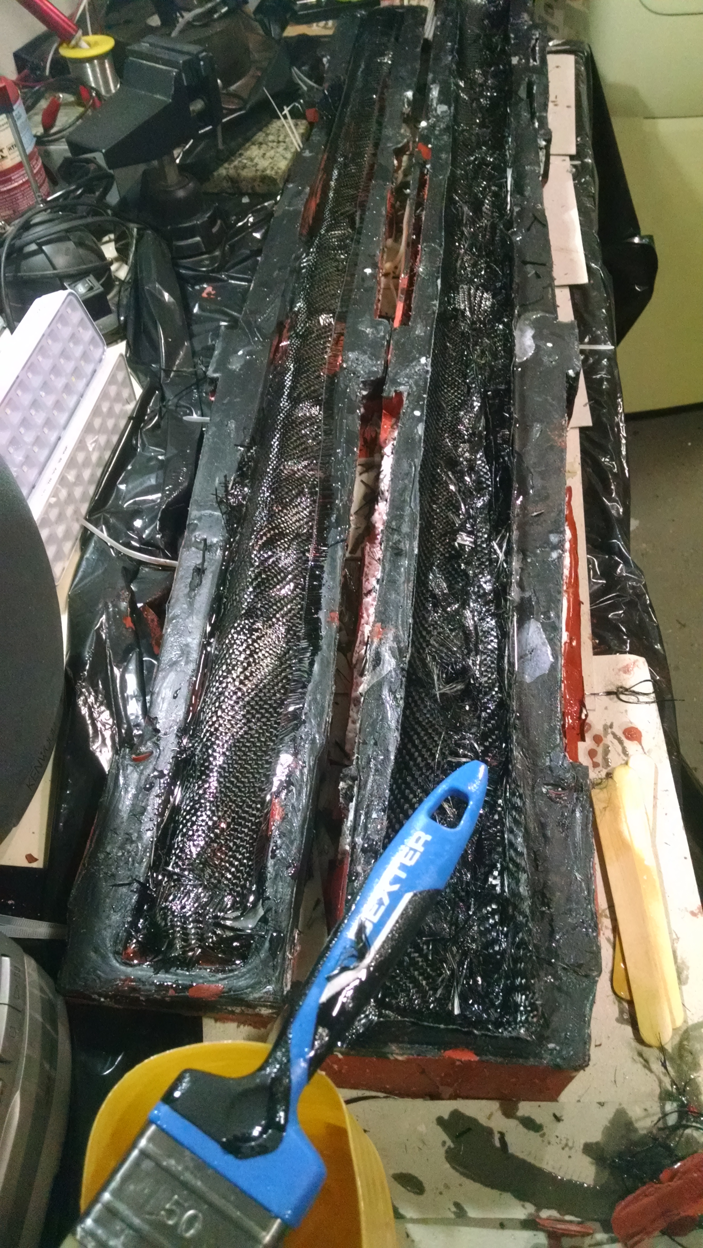 Veja nas fotos abaixo, como fiz os aeros de teste em fibra de carbono, obviamente usei os moldes um de cada vez, fiz 2 peças, enchi de espuma de poliuretano e pretendo colar uma na outra.