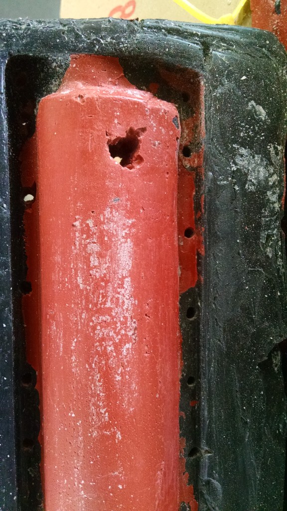 Na foto abaixo, veja que o molde quebrou e entrou muita resina na formação da peça.