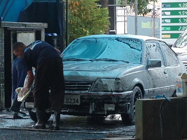 E para comemorar 1 ano de uso diário….uma lavagem completa no posto. Com direito a jetcera, aspirador, pneu pretinho e a recomendação: ” cuidado para não riscar a pintura!!!” Hahahahah……