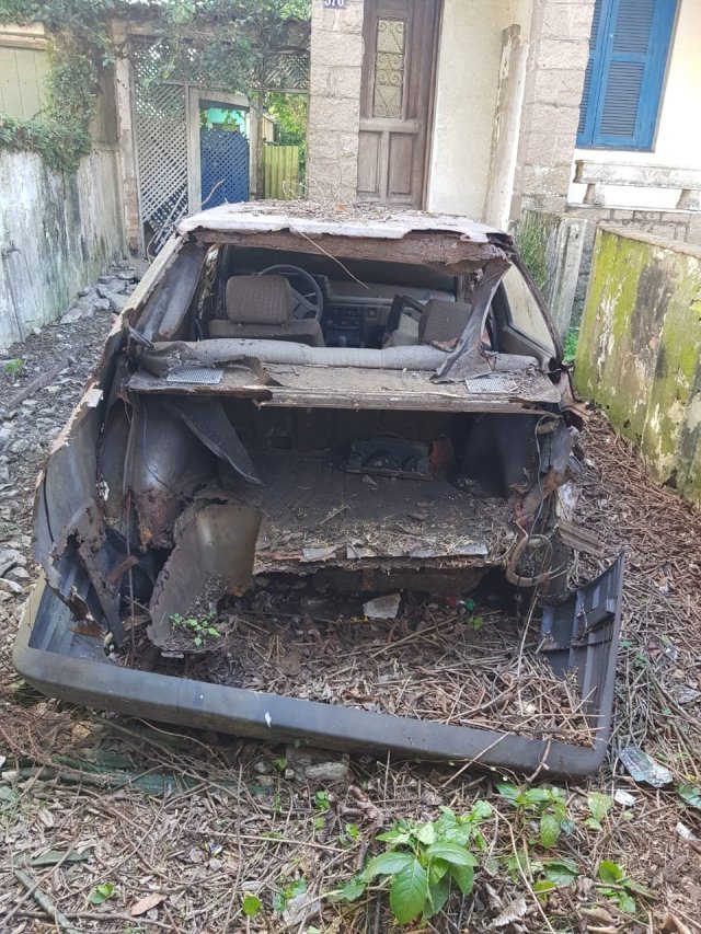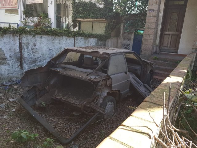 Meu amigo Fábio Haddad fotografou em Santos esta cena de terror. Aparentemente era um Voyage GL 1988, só não tenho certeza se era monocromático ou se está marrom de poeira. Qual sua opinião? De qualquer forma que descanse em paz ou que na próxima vida ele volte como um Voyage Confortline 1.6 automático.