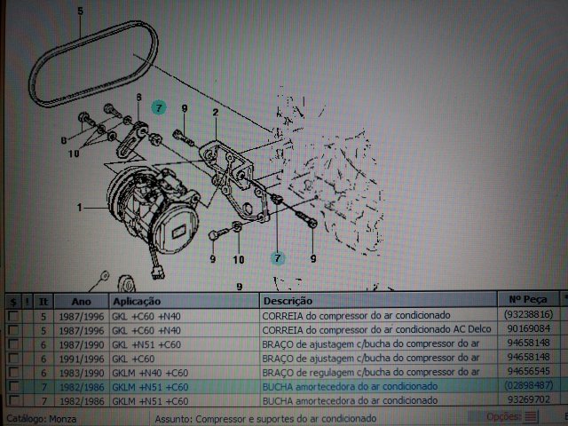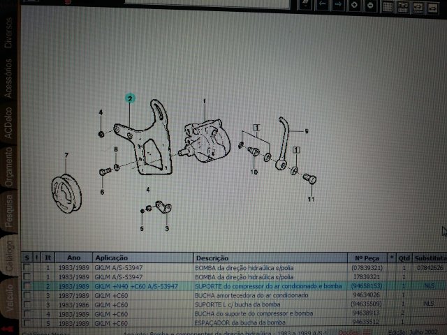 Até 1986 existem 3 números de suportes do compressor e/ou bomba da direção (apenas AC, apenas DH e AC+DH) e os 1987 até 1990 outros 3 tipos diferentes e do 1991 até o último 1996 outros…. Enfim o suporte não original (e bem “tosco” por sinal) que eu tenho (1987) não serve no S/R 86 (existe uma pequena diferença que não permite alinhar corretamente o compressor do Ar, a bomba da DH e o alternador), assim como a polia do virabrequim que também é diferente, etc.