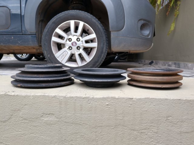 abaixo os suportes e polias do Monza 87, o technoauto e o original do 86.