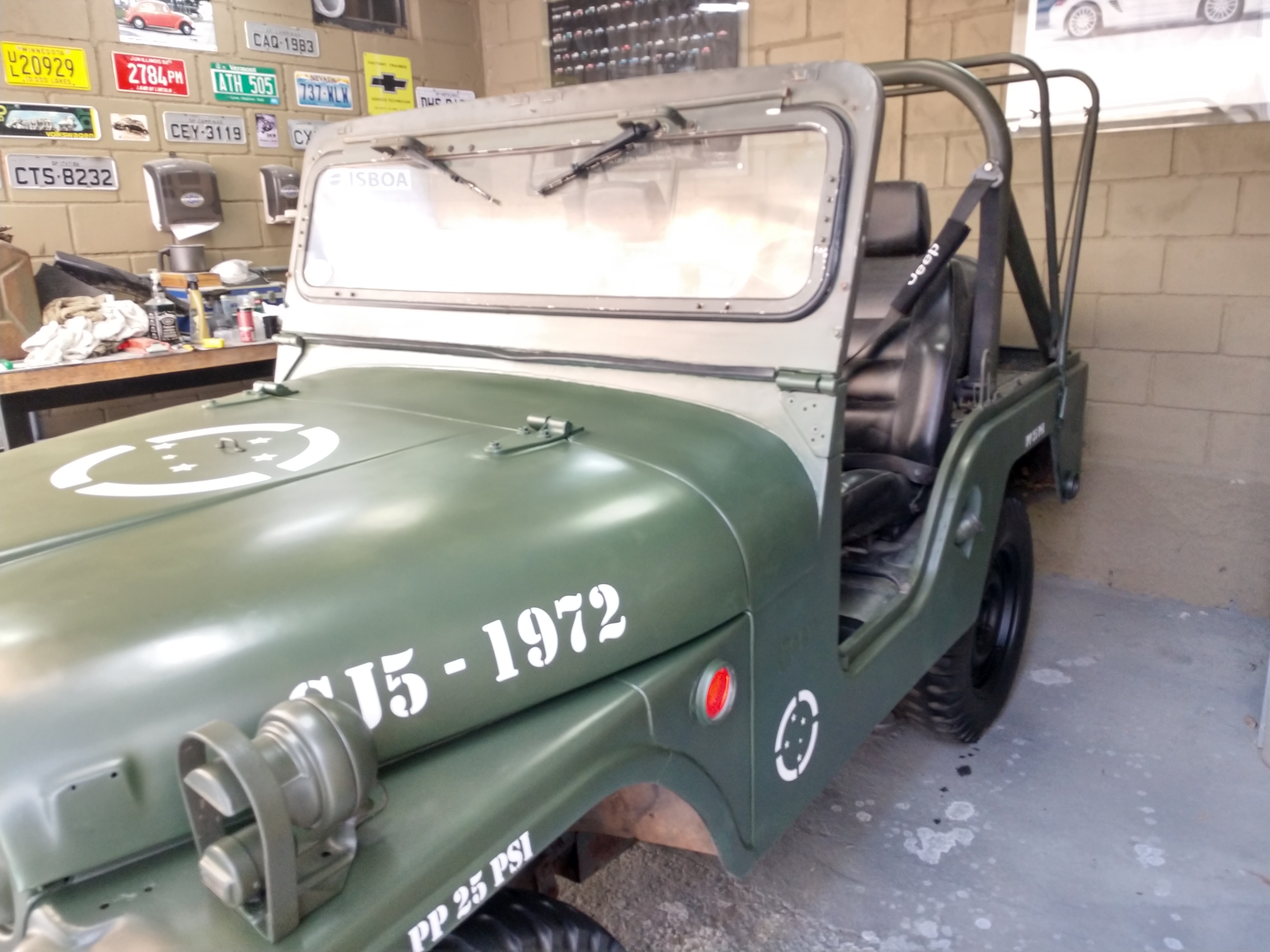 Depois de pintado colei os adesivos. O “Cruzeiro do Sul” do Exército Brasileiro (porque a “estrela” quem usa é o exercito americano) e o Brasão do Exército Brasileiro não pode ser utilizado por civil (óbvio) assim como o número de frota que este jeep tinha no exército!!! Então colei o adesivo com o Modelo e Ano no lugar do número de frota e batalhão.