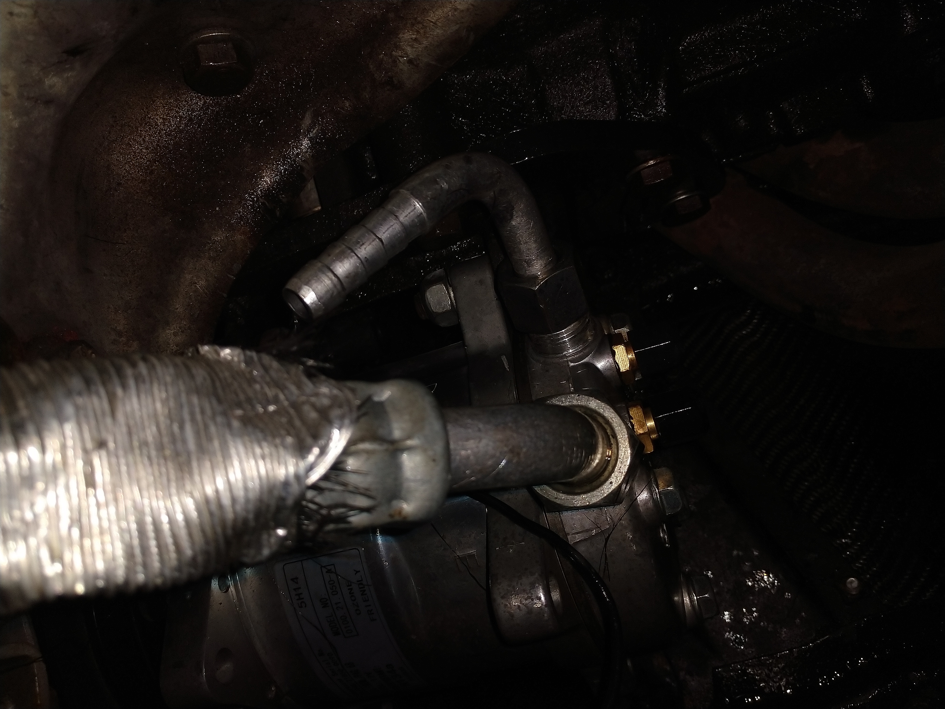 Abri o capô e tinha óleo para todo lado, pensei no pior…. “será que foi o bloco do motor? mas em marcha-lenta seria impossível!!” Olhei mais de perto e vi que uma das mangueiras do ar condicionado havia estourado…. então a fumaça era o gás do sistema vazando. Fiquei aliviado!!!!