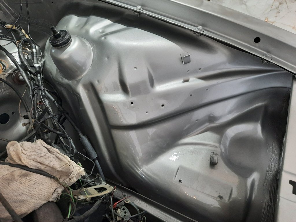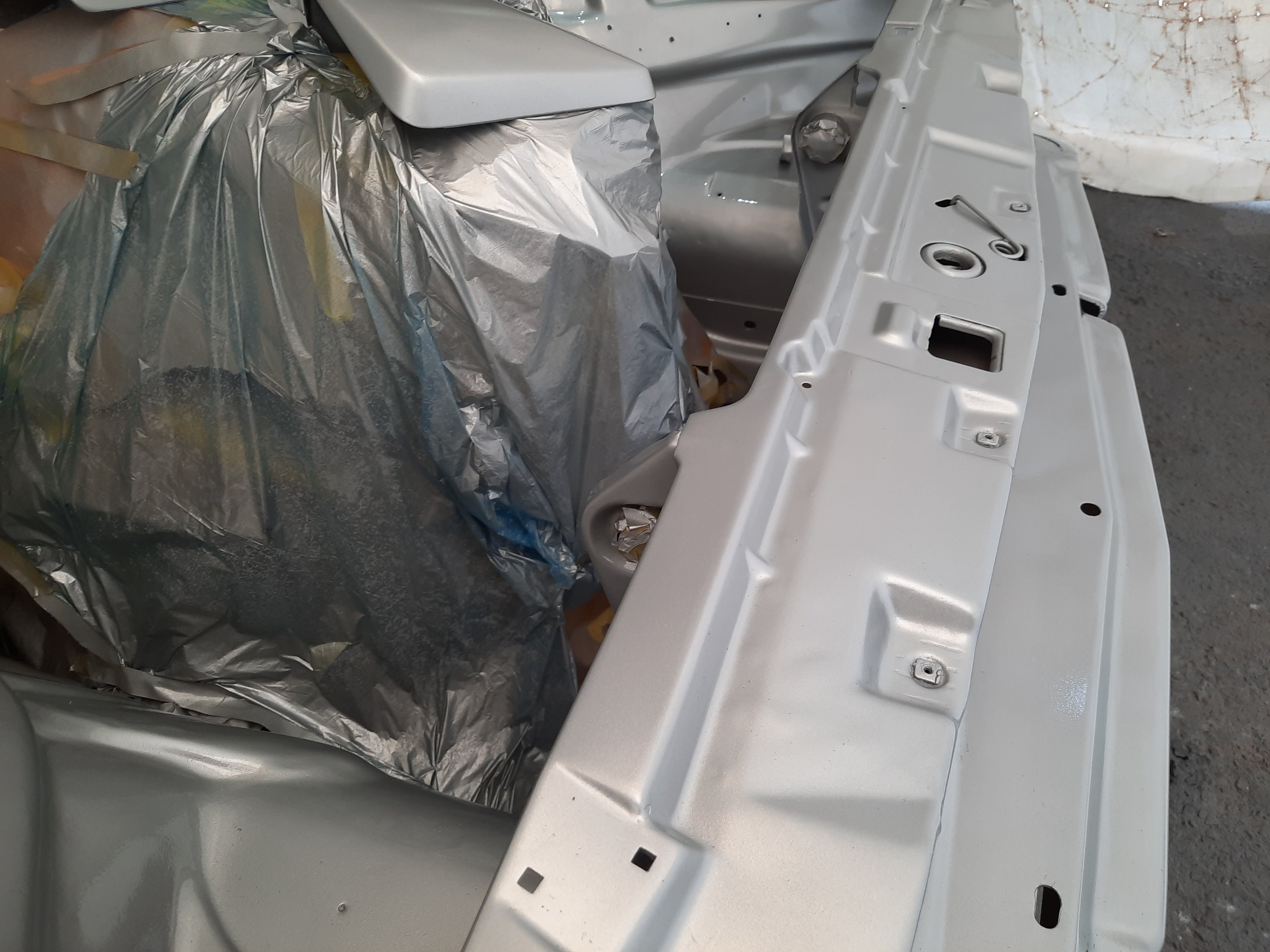 Pintei um pedaço de cada paralamas e o painel frontal apenas para ver como ficará a Chevy pintada com esta tonalidade de Prata. Alguns lugares ficaram “casca de laranja” que pode ser corrigido no polimento, outros faltou um pouco mais de verniz, mas no geral, para uma pintura caseira fiquei muito bom!!!!