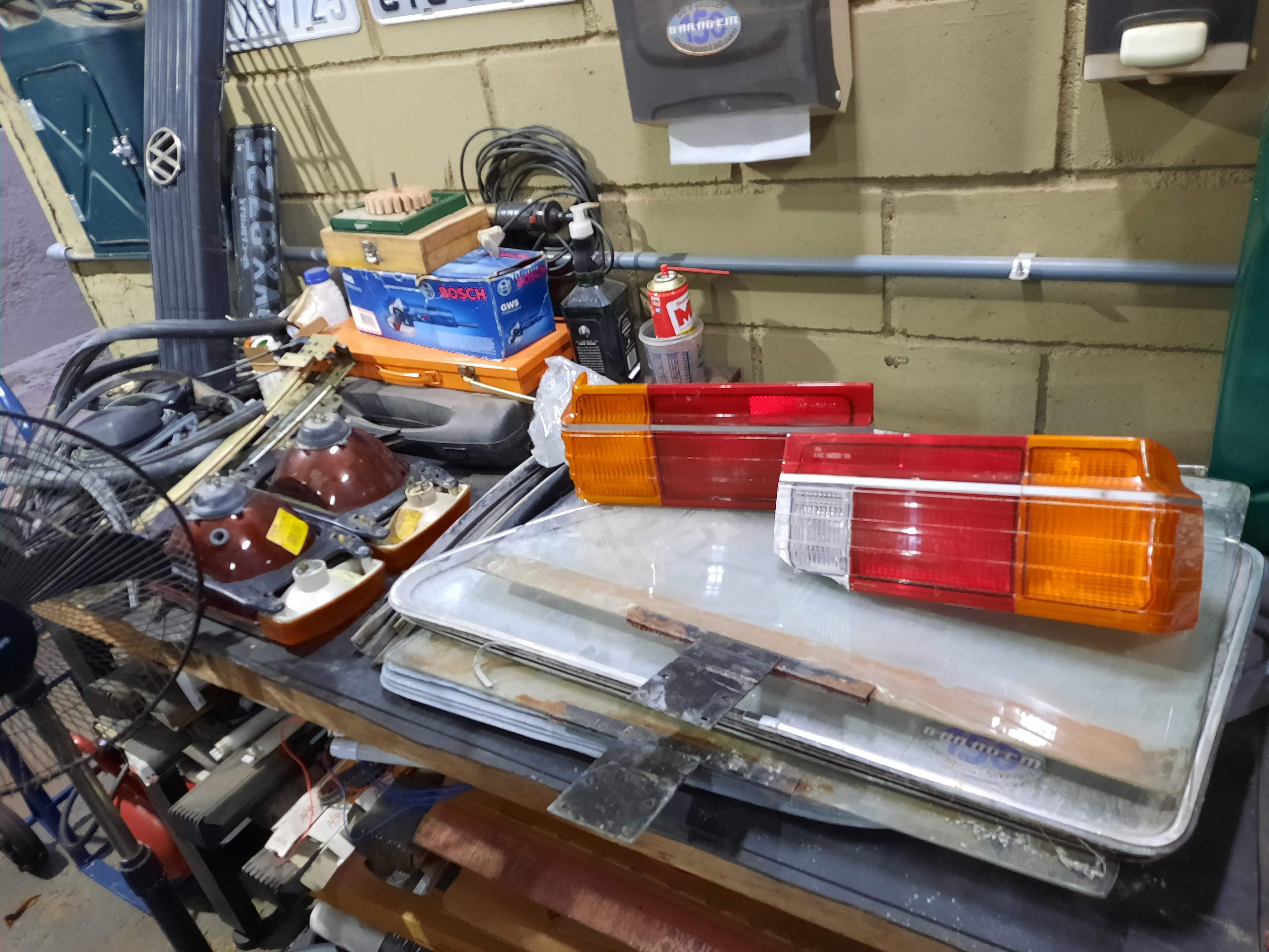 Também trouxe todas as peças que estavam na oficina e comecei a limpar tudo e restaurar as peças com a ajuda da Fabi, antes de montar no Voyage
