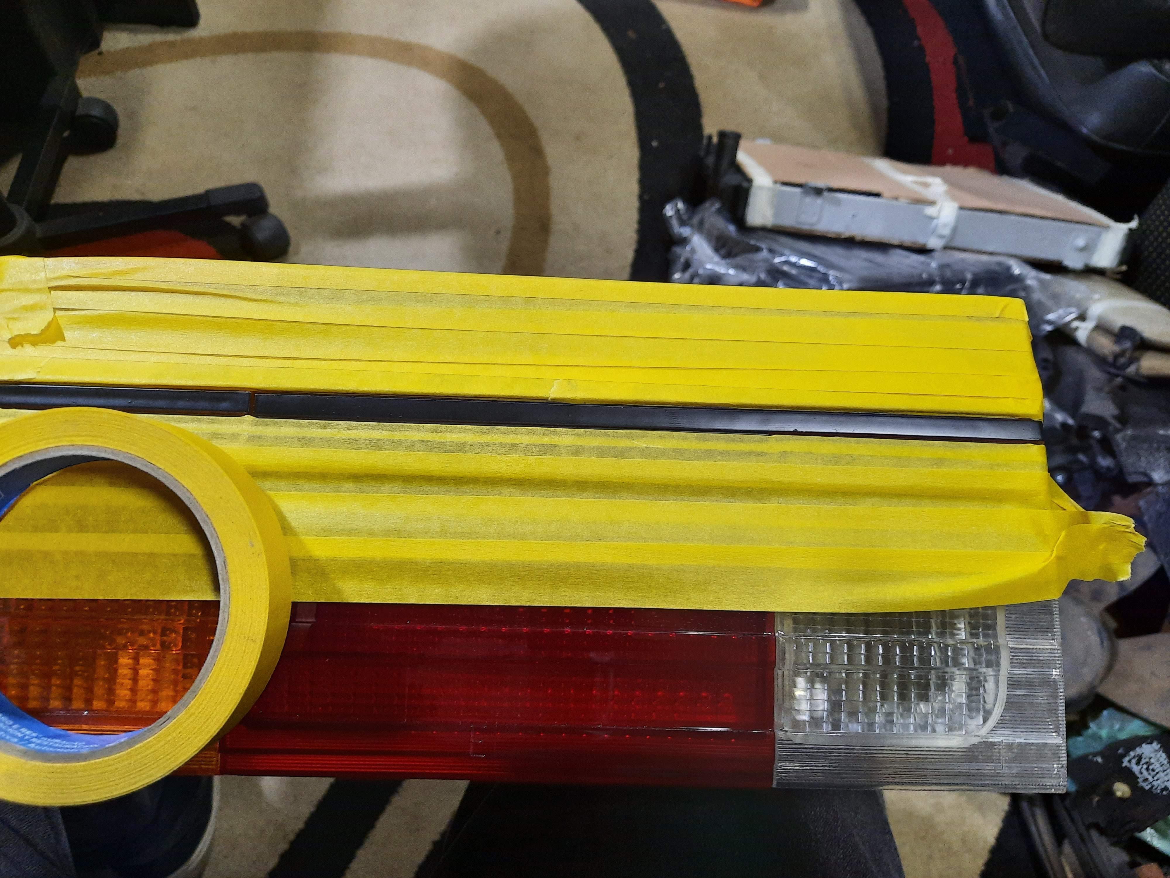 E as lanternas novas? Não consegui um par original com logo VW por um preço justo, então tentei um par cibié, mas só encontrei com a ré pequena, ano 84 em diante. Então comprei um par Arteb, Valeo, IPV, etc…. ou seja o mesmo molde original mas que muda de nome de tempos em tempos, embora não tenha o logo tem a mesma qualidade e um bom preço. Porém com o friso preto….. então tive que fazer um artesanato….usando um spray cromado