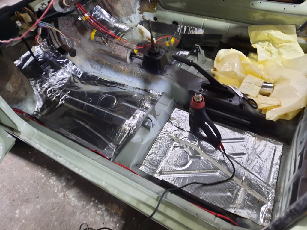 Também já colei a manta asfáltica no assoalho, portas e laterais traseiras, além da forração acústica nova.