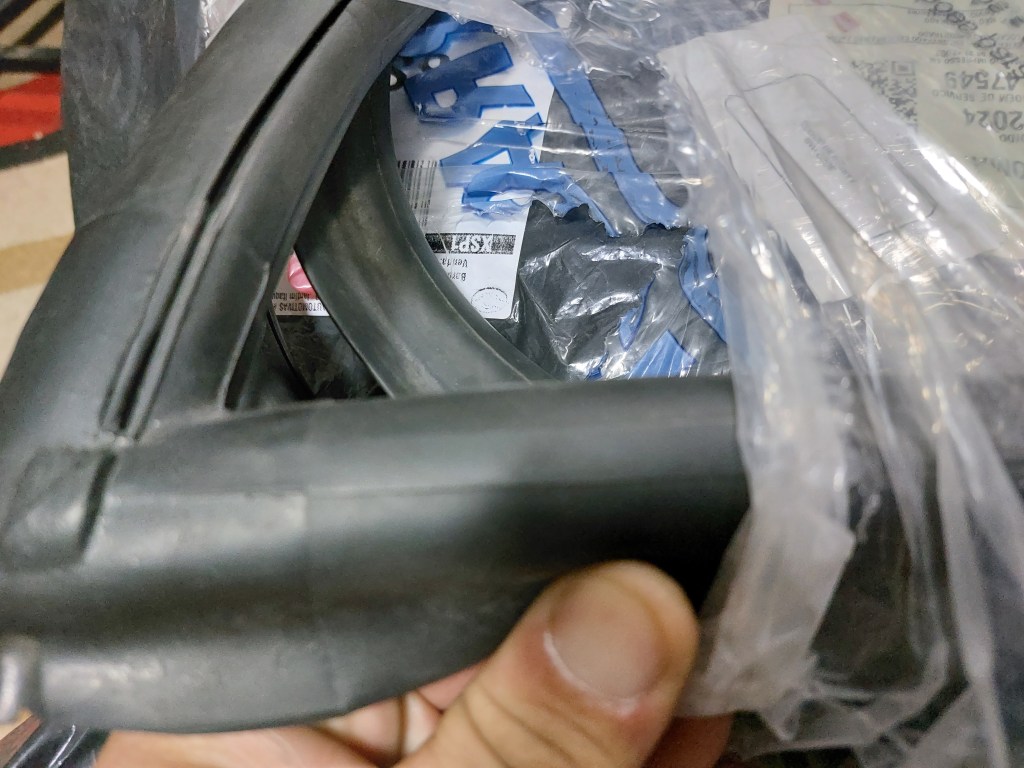 Outro problema é a baixa qualidade ou os erros de fabricação das peças paralelas. Veja abaixo, uma das borrachas que comprei, não tem o lugar para o friso inferior traseiro, apenas os laterais…. vai entender….o que passou na cabeça de quem projetou a peça, será que ele já viu um Voyage original na vida? Ou foi uma “inovação “? Do tipo….”acho que a vw deveria ter feito os frisos do Voyage iguais ao Santana, então vou tirar o rasgo debaixo.”