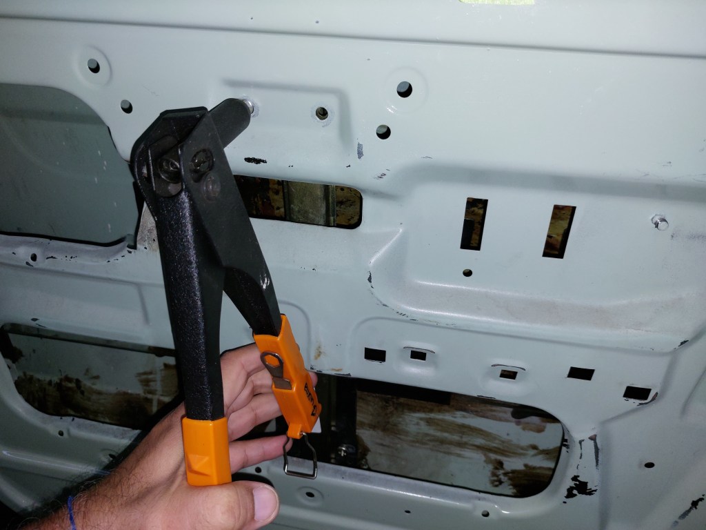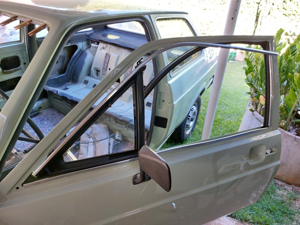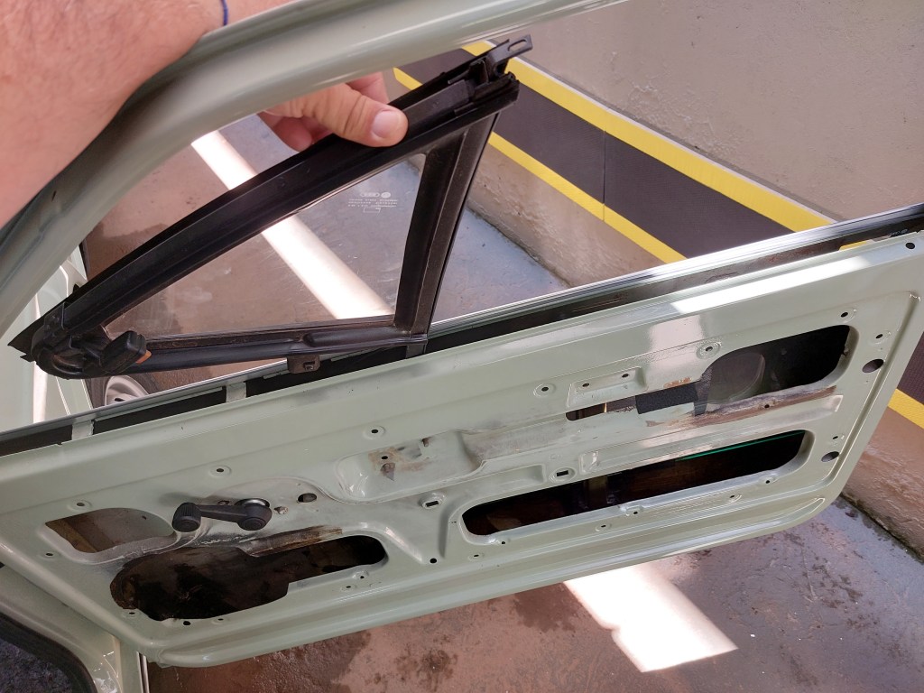 Comece colocando o vidro dentro da porta, em seguida monte a máquina de vidro, parafuse o suporte ao vidro, mas não parafuse/rebite definitivamente. Coloque os frisos cromados na porta e monte o quebra-vento antes das pestanas. Instale o limitador do vidro dentro da porta, Encaixe as pestanas nos frisos….E finalmente monte, fechadura, gatilho, vareta, etc… veja abaixo nas fotos.
