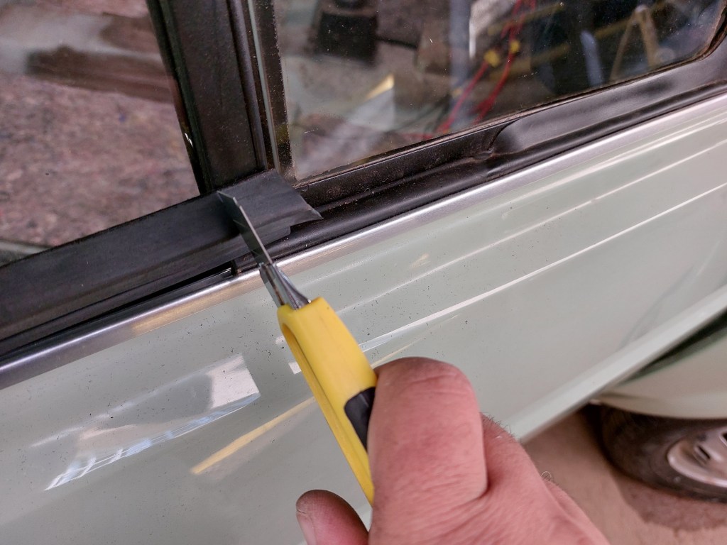 PRIMEIRO PASSO: Os frisos cromados/metálicos das borrachas do parabrisa, vigia traseiro e vidros laterais são extremamente raros no Voyage, apenas nos primeiros anos são cromados e de alumínio, nas portas são cromados, mas de plástico e existem novos (paralelos), mas acredito que não são todas as versões de Voyage que utilizam, então a dica é: Melhor cortar as borrachas velhas para tirar os frisos.