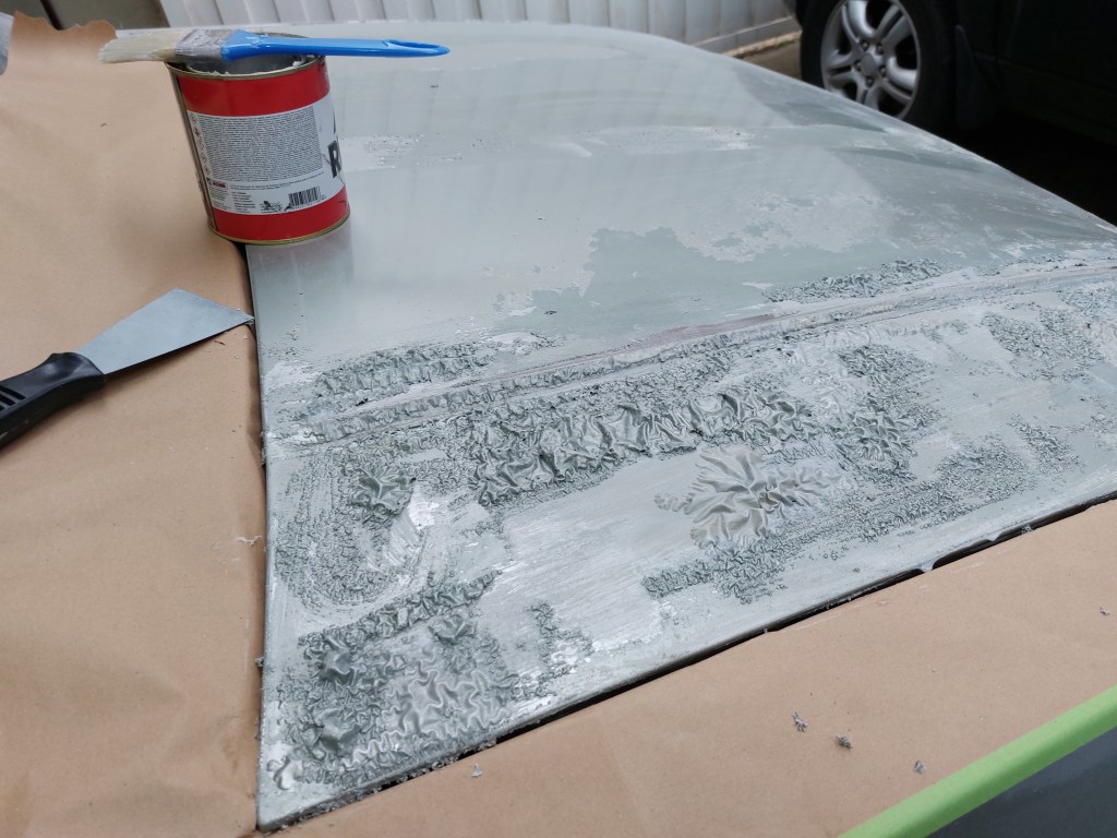 Acima, após funilaria e lixamento da massa, próximo passo, wash primer, primer e lixas….. mas só no próximo post.