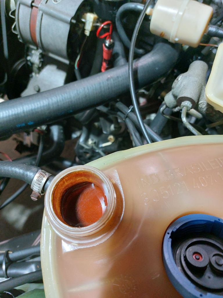 Mas como ele ficará guardado no mínimo uns 3 anos na Garagem 150 em uma das vagas do “corredor”, ele precisa estar funcionando para poder ser manobrado, então continuei a revisão mecânica onde o Fernando havia parado, já havia sido revisado e trocado toda parte de ignição e carburador, então “ataquei” o sistema de arrefecimento, que inclusive estava vazando, mesmo estando com aditivo aparentava estar bem “sujo”.