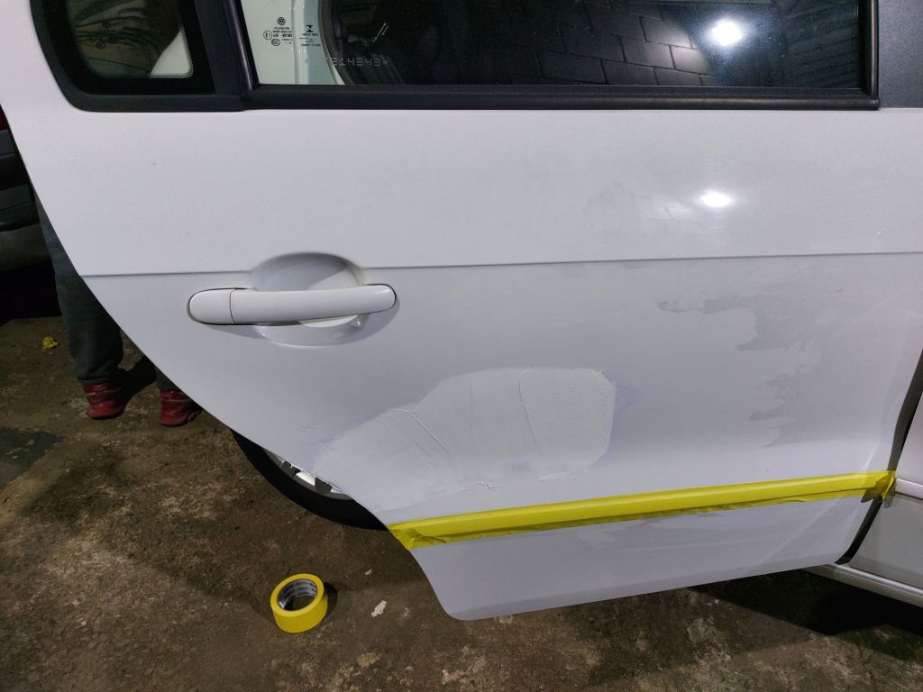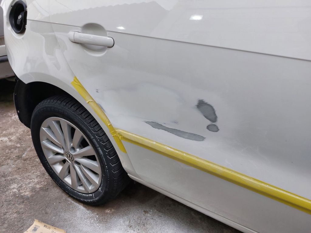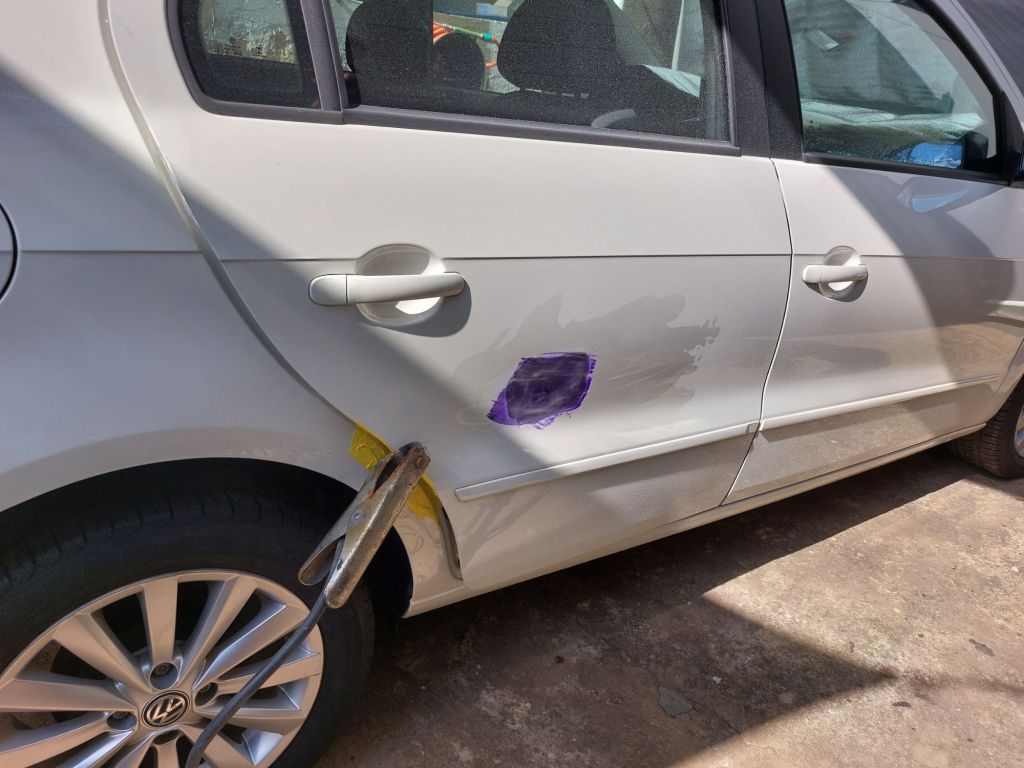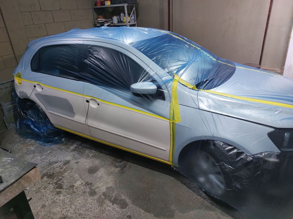 Então foi o famoso “já que…” vai retocar (a pintura ainda era toda original, apesar dos 10 anos de uso), decidi pedir para o Felipe, dar uma geral no Golzão, pintar também o parachoque dianteiro e os frisos da lateral direita que tinham uns raladinhos e batidas de portas em estacionamentos.