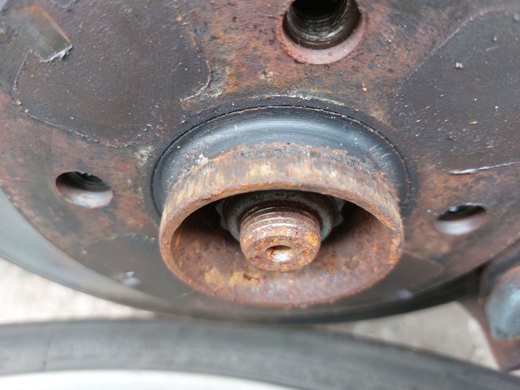 Como a Garagem 150 é a vida real do “diy”, uma das rodas não saia, o disco de freio oxidou no centro e travou a roda…