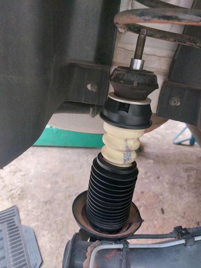 Eu identifiquei que havia algum problema com a suspensão, pois ouvia um barulho de algo solto do lado traseiro direito, então fui olhar como estavam os batentes e coifas, e a situação era a das fotos abaixo. Apesar dos 10 anos do Golzão, ele tem apenas 100.000 km e praticamente só andou na estrada, por isso ainda era tudo original de 2014!!! E acredite os amortecedores estavam perfeitos e não foi preciso trocar agora.