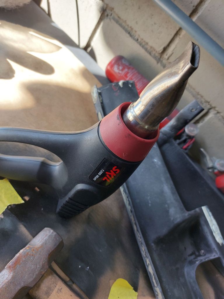 Terceiro passo, foi aquecer com o soprador térmico para desentortar o plástico.