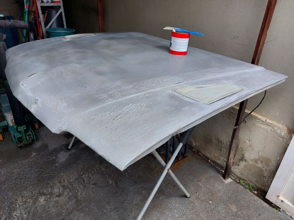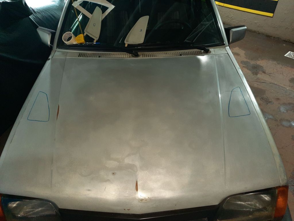 E finalmente pronto! Ah…ok, falta lixar, polir e montar no lugar, mas na foto nem dá para perceber…. kkkkk. E o mais legal é o contraste que eu queria, capô zerado e novo e os paralamas desgastados naturalmente.