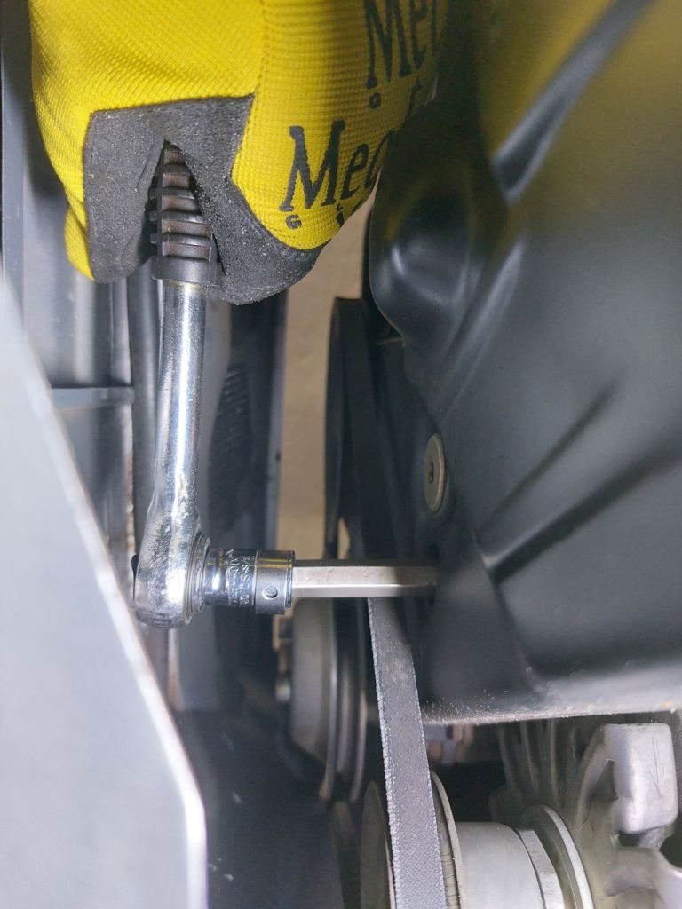 O terceiro passo é soltar o suporte que prende o alternador ao motor AP. Usando uma chave Allen 6 e uma catraca tire o parafuso.