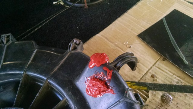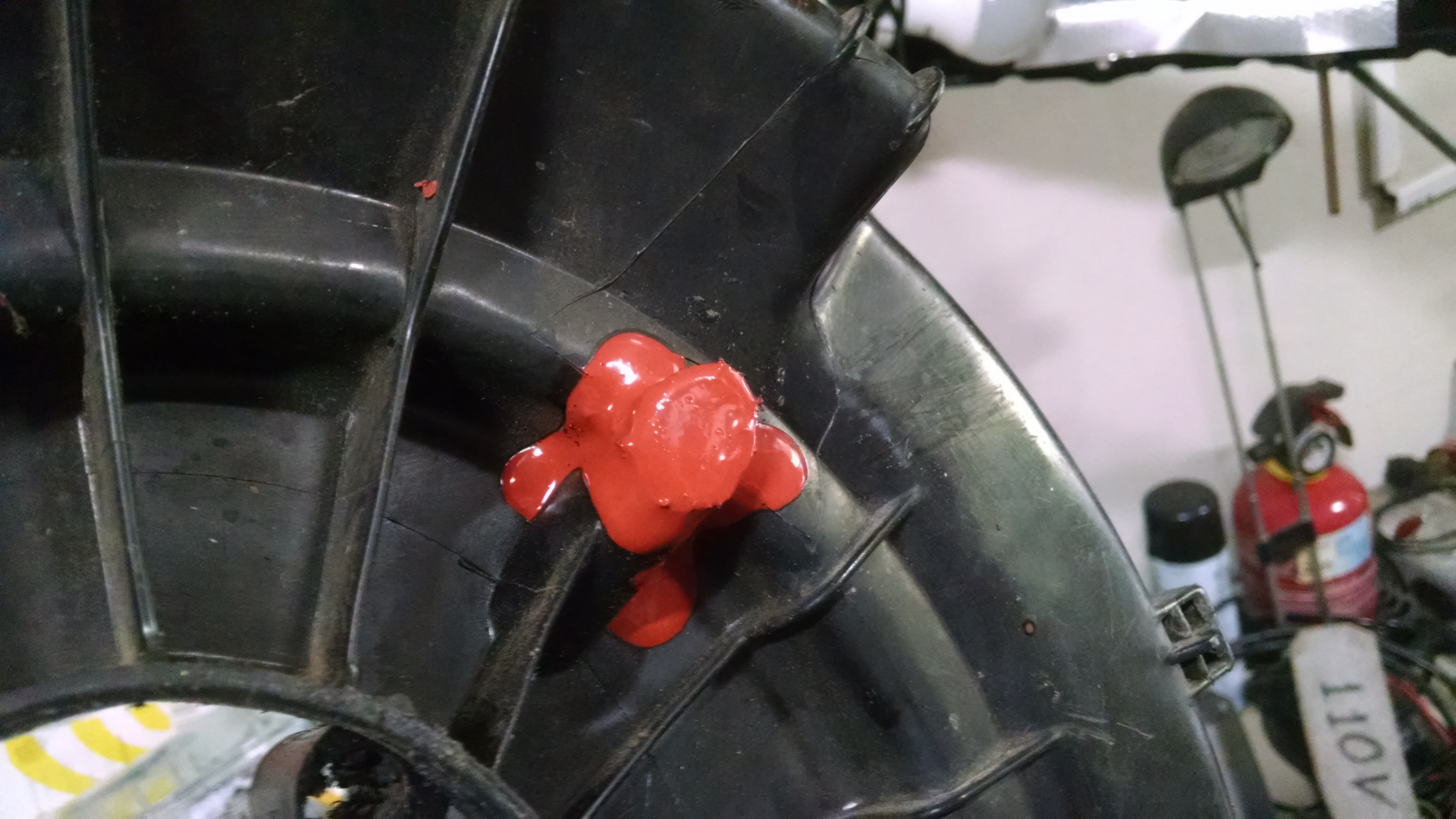 Depois fechei a entrada do blow by (vapor de óleo do motor) usando borracha de silicone, e os furos de dreno de água.