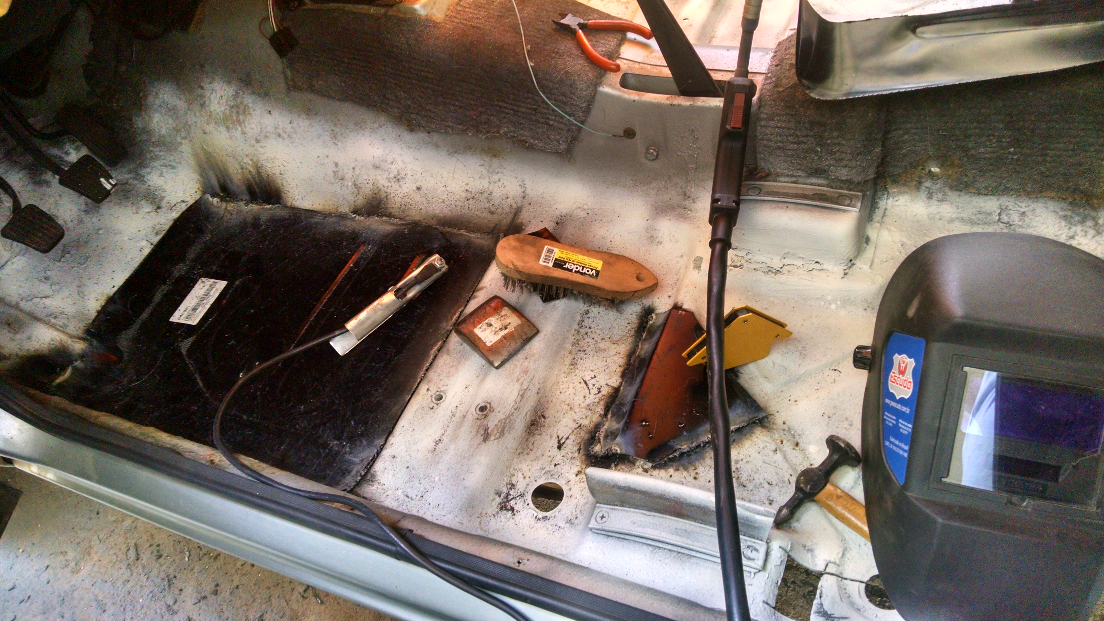 O segundo passo foi deixar o cabo fazendo uma “curva” de maneira mais “aberta” possível passando entre os canos dos freios e chegando na transmissão (mas sem conectar ainda).