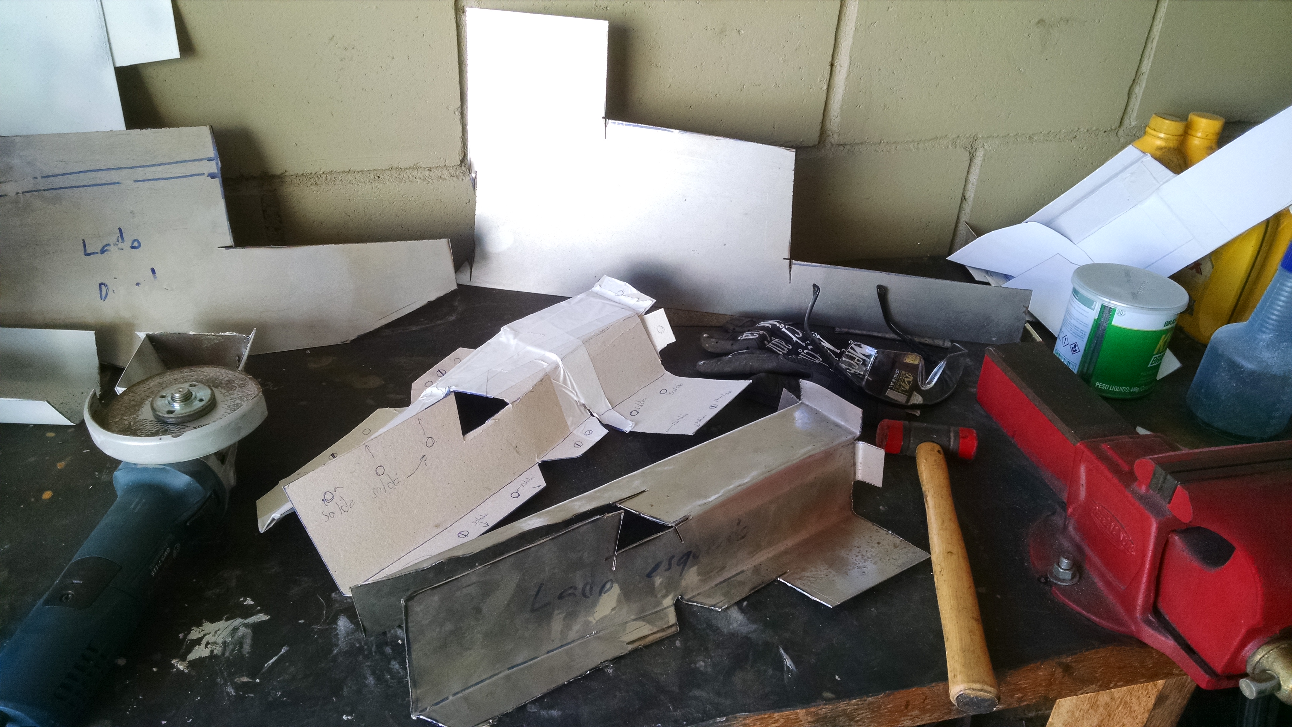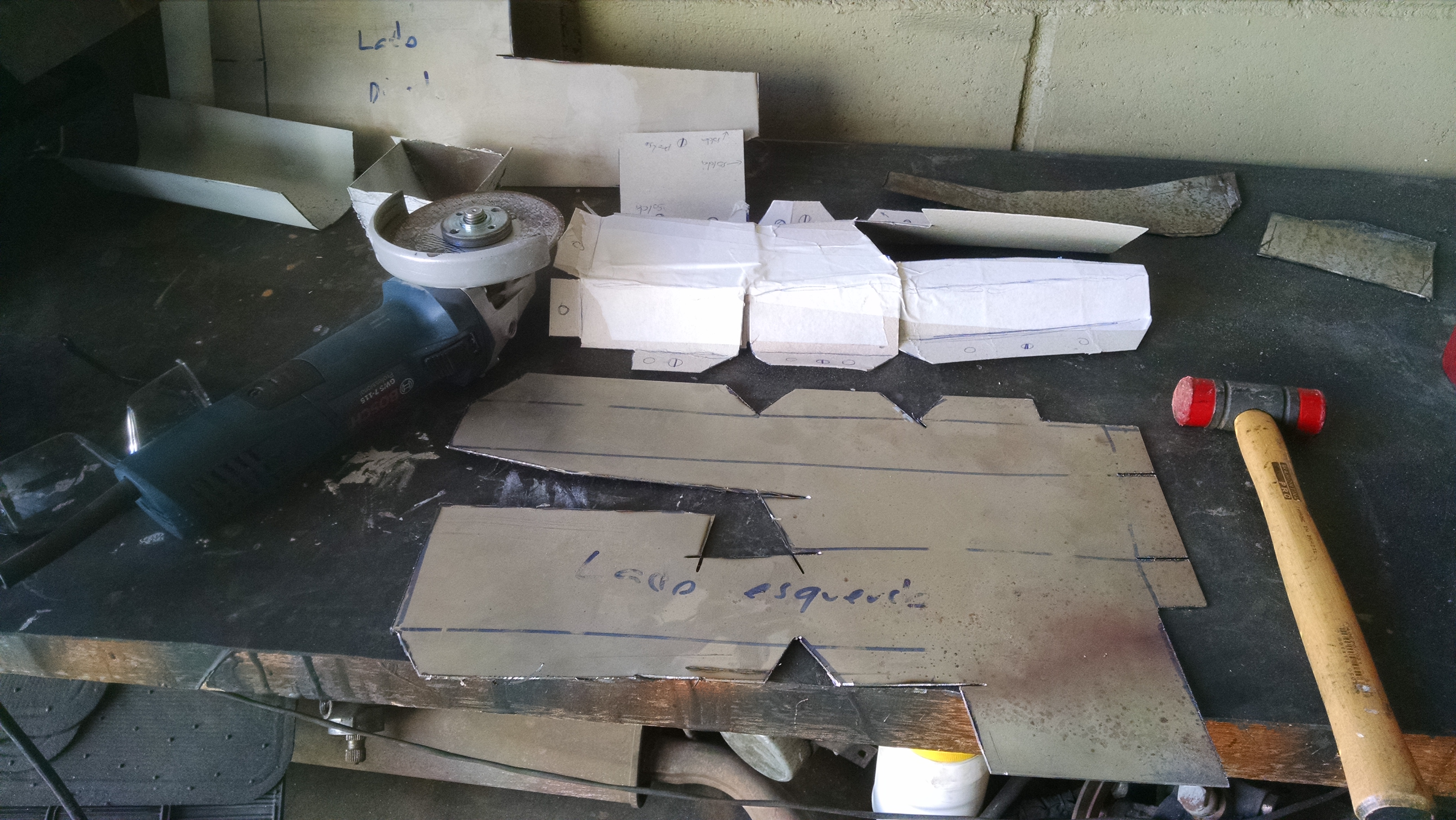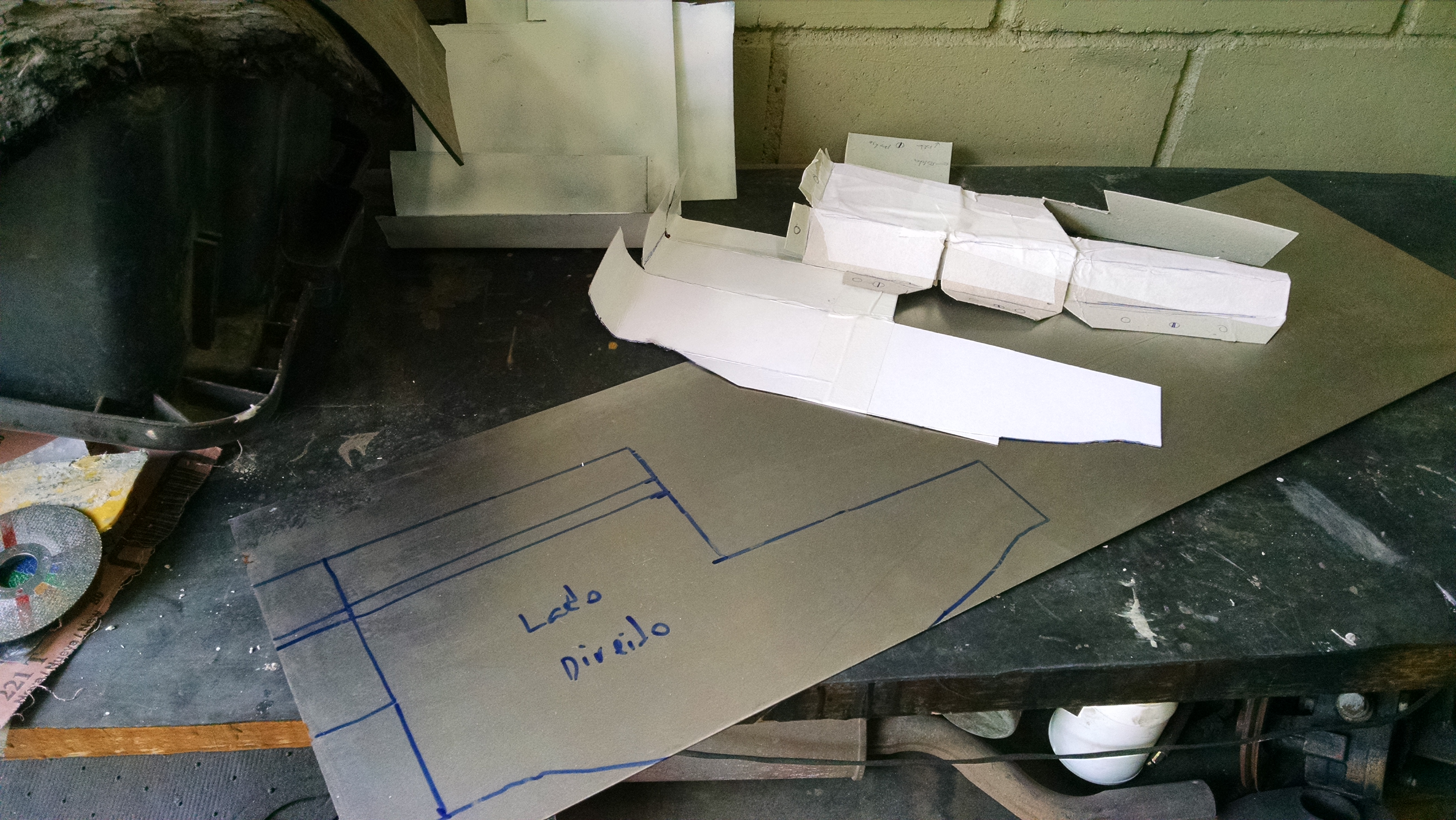 O Compartimento do motor pintei antes de instalar o motor recondicionado, pintei alguns detalhes do família II em preto fosco e o capo foi envelopado de prata (também fosco). Soldei todas as partes relevantes para a segurança da carroceria e deixei as ferrugens nas partes estéticas.