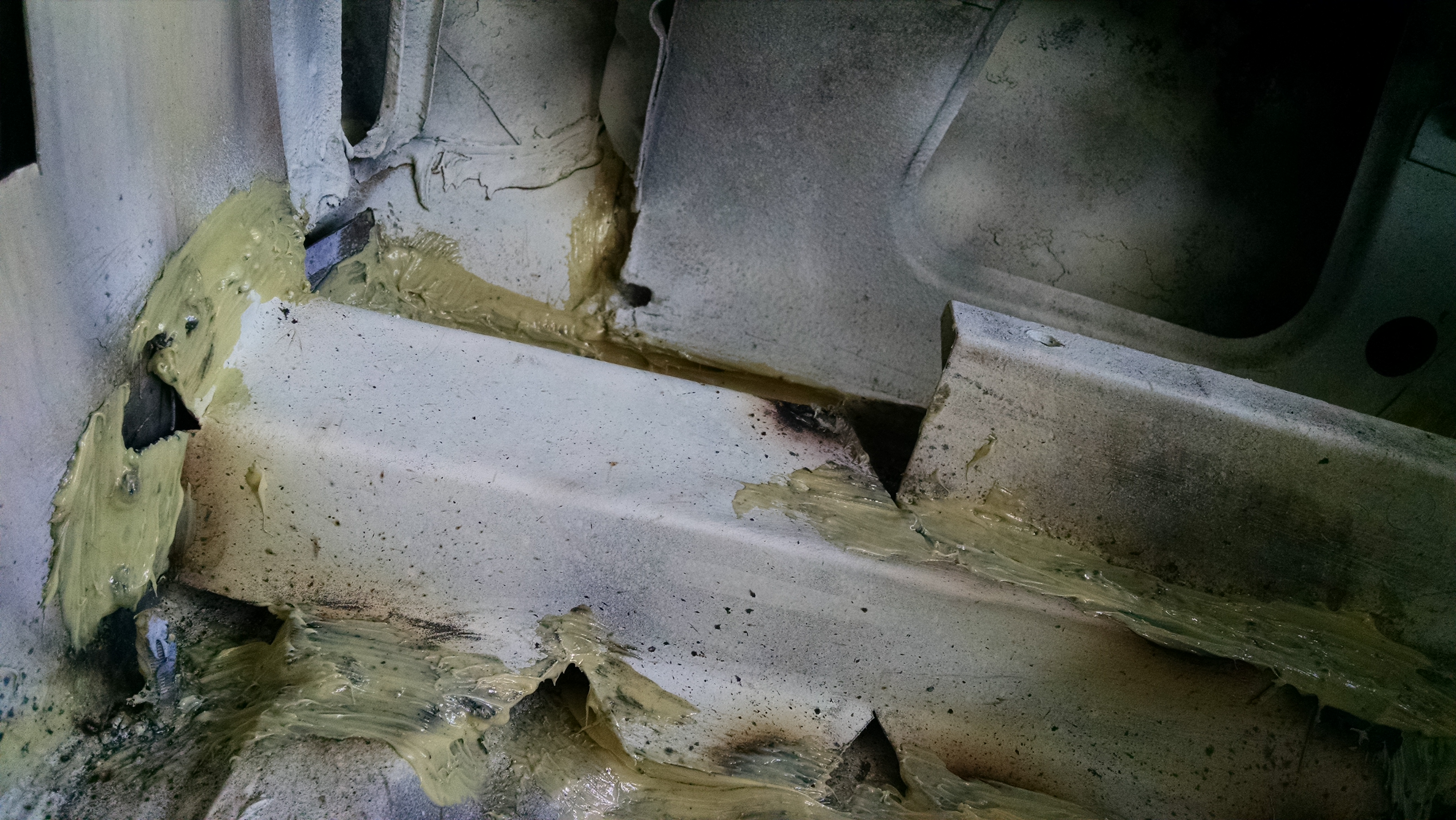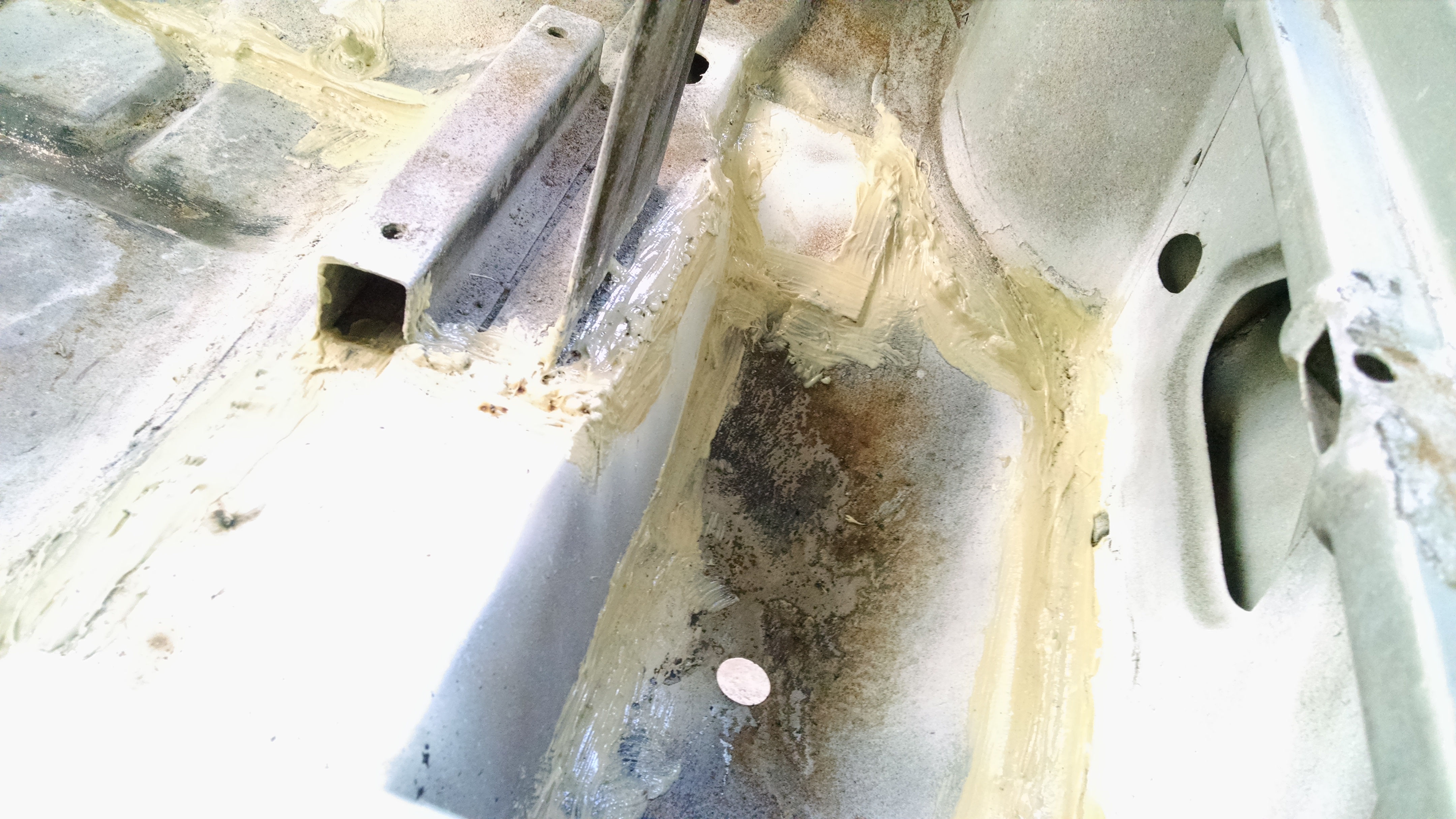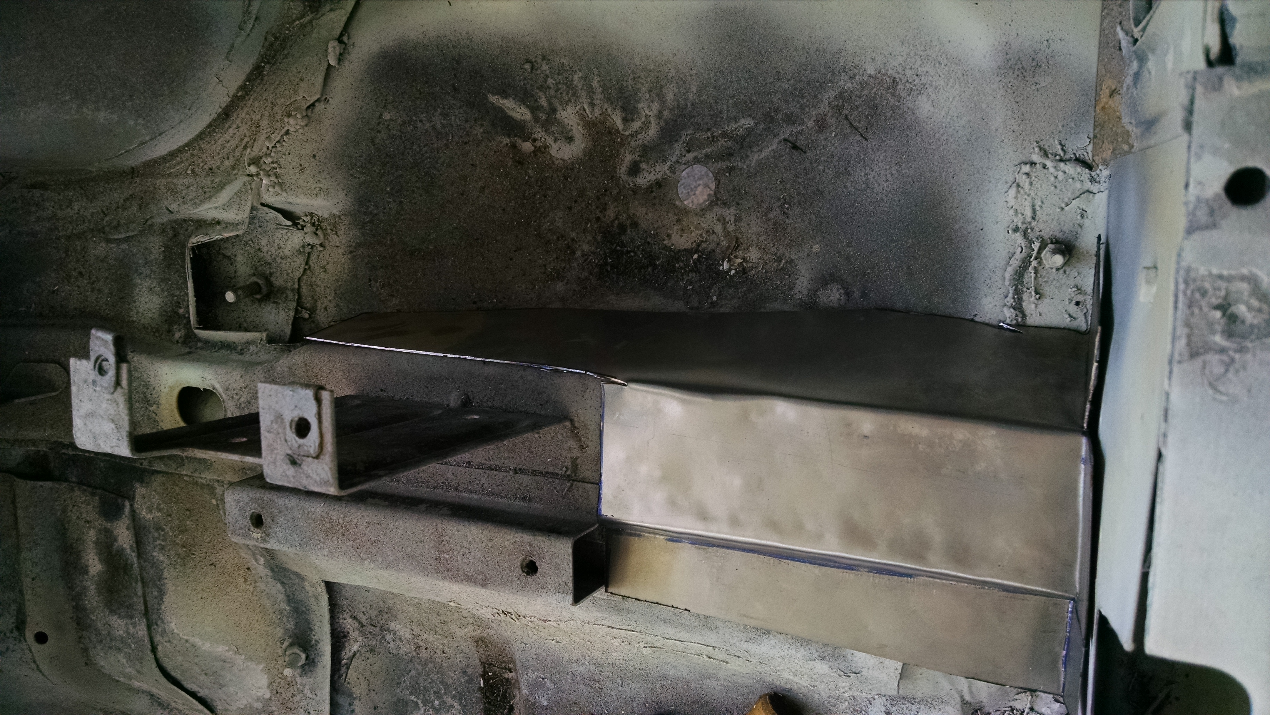 O Compartimento do motor pintei antes de instalar o motor recondicionado, pintei alguns detalhes do família II em preto fosco e o capo foi envelopado de prata (também fosco). Soldei todas as partes relevantes para a segurança da carroceria e deixei as ferrugens nas partes estéticas.