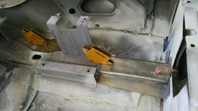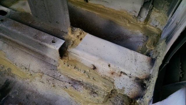 Comecei a tentar a fazer funilaria e soldar com a mini-mig usando este Monza de cobaia, no fim acabei consertando o assoalho, tirei algumas ferrugens das partes pretas e repintei, na traseira embaixo descobri um conserto com fibra de vidro, lixei e removi tudo, passei anti ferrugem no carro todo. Eu e minha esposa fizemos um tampão para o portamalas usando fibra de vidro, papelão e carpete, lavamos todo interior, volante revestido e um radio dos anos 2000 com direito a bluetooth e caixa no portamalas. O motor também foi desmontado e retificado, trocado embreagem, mangueiras, radiador, enfim, quase tudo.