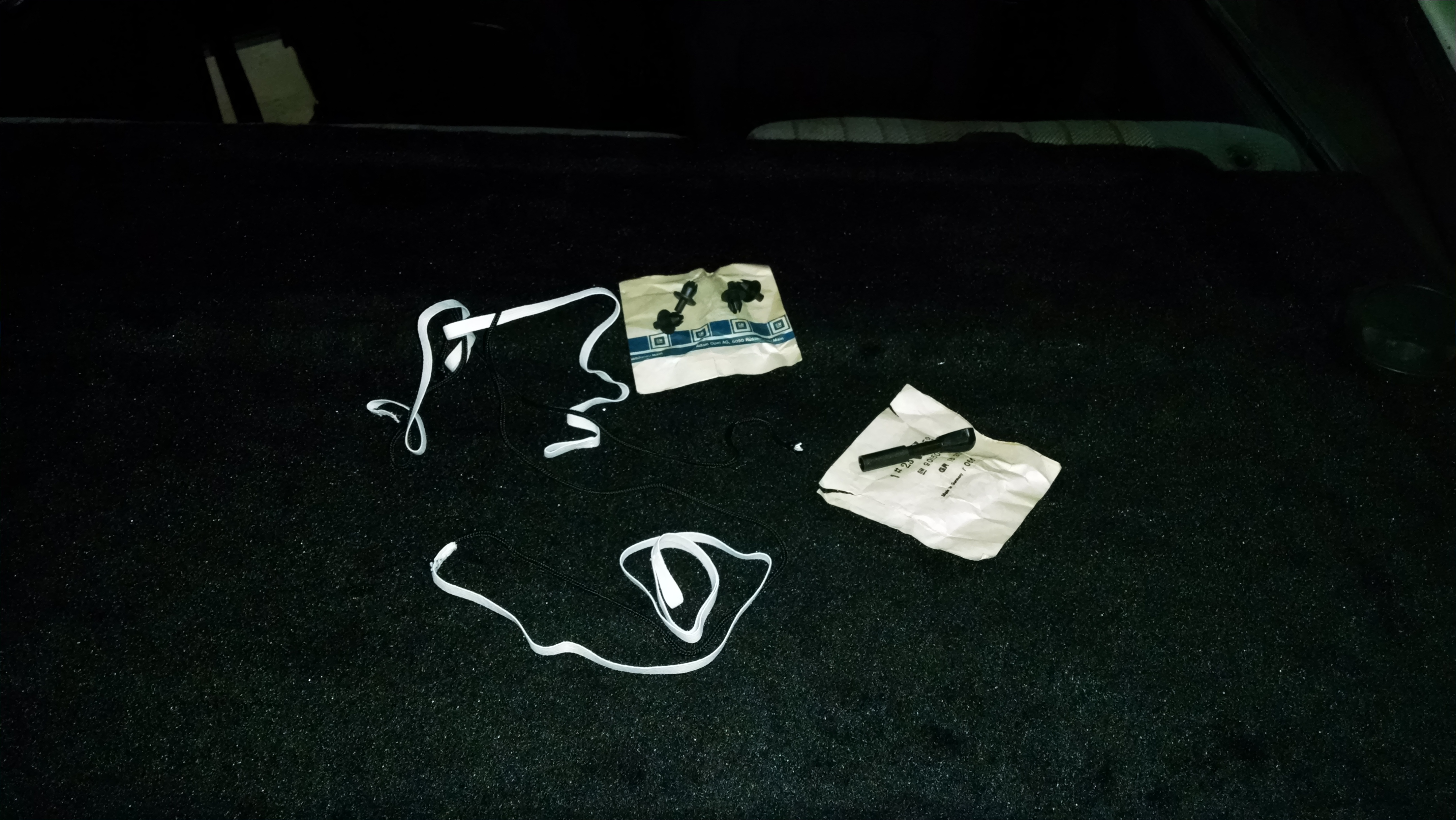 Uma “fita de mochila”, resina epóxi, fibra de carbono, rodinhas plásticas, carpete, porcas/parafusos, uma rede com ganchos e um pedaço de cano de PVC.