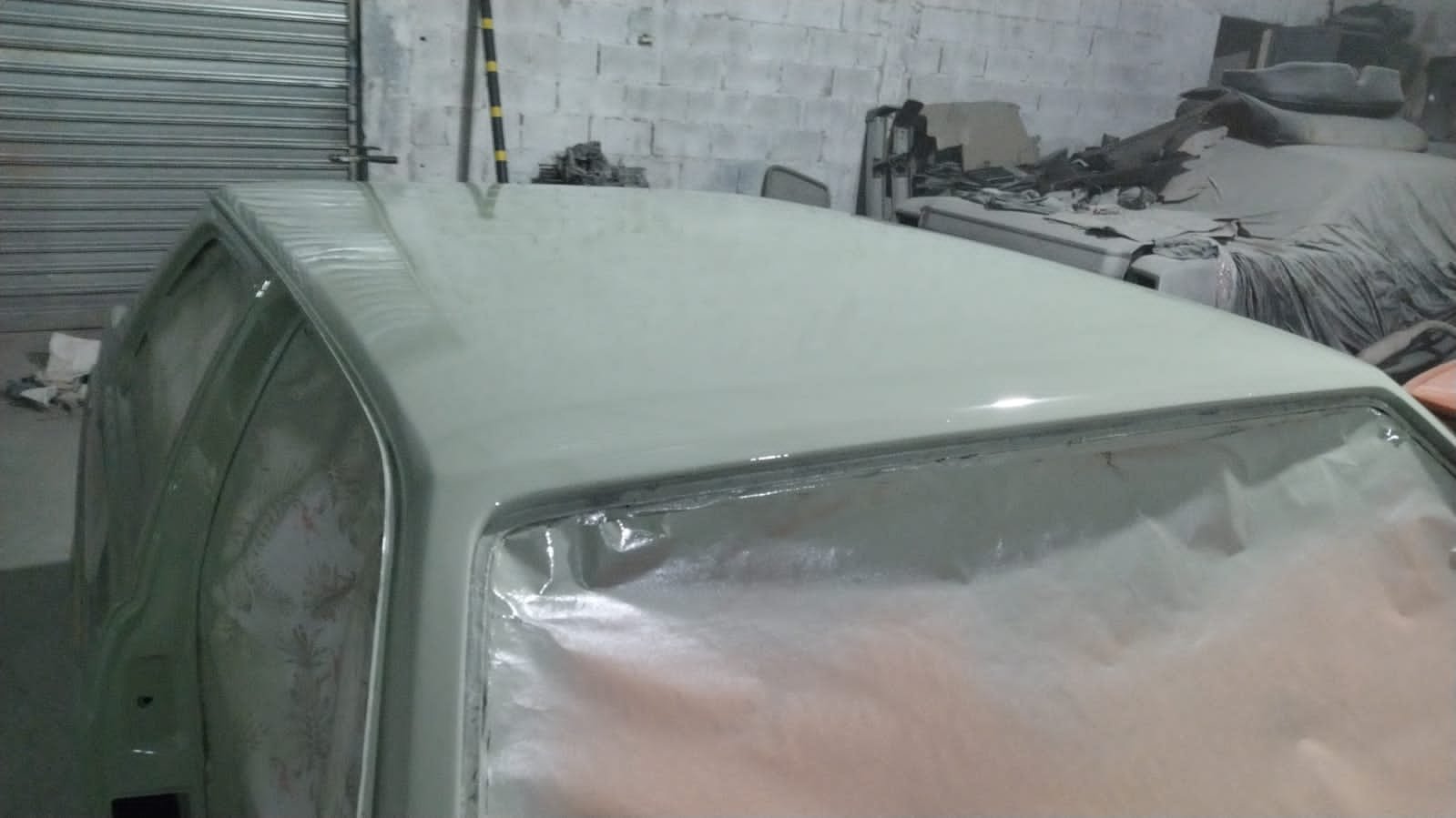 E a parte interna? Bom, eu gostaria que o tapeceiro viesse até a Garagem 150 para instalar o teto e laterais em courvim … Mas ele não faz serviços “a domicílio “…. então precisaria levar o Verdinho até a oficina dele e deixar lá alguns dias/semanas…. e a realidade é que eu não ficaria tranquilo…. sou extremamente ciumento e possessivo com meus hotwheels, então comprei um kit de teto e colunas pela Internet e tentei eu mesmo instalar, e ficou uma £♡#@&*!!!!!¡