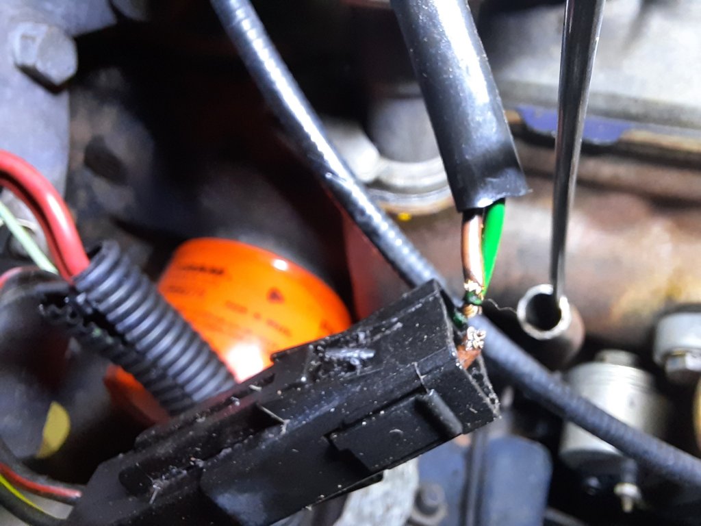 Padrão diferente do comumUsei uma pinça para destravar o conectorE aqui consertado e protegido com fita de tecido. vazando álcool na Garagem
