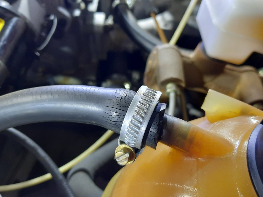 Troquei também a mangueira entre o radiador e o reservatório, já comprei várias e elas racham, então desta vez coloquei uma mangueira “genérica” igual fiz em meu outro S/R.