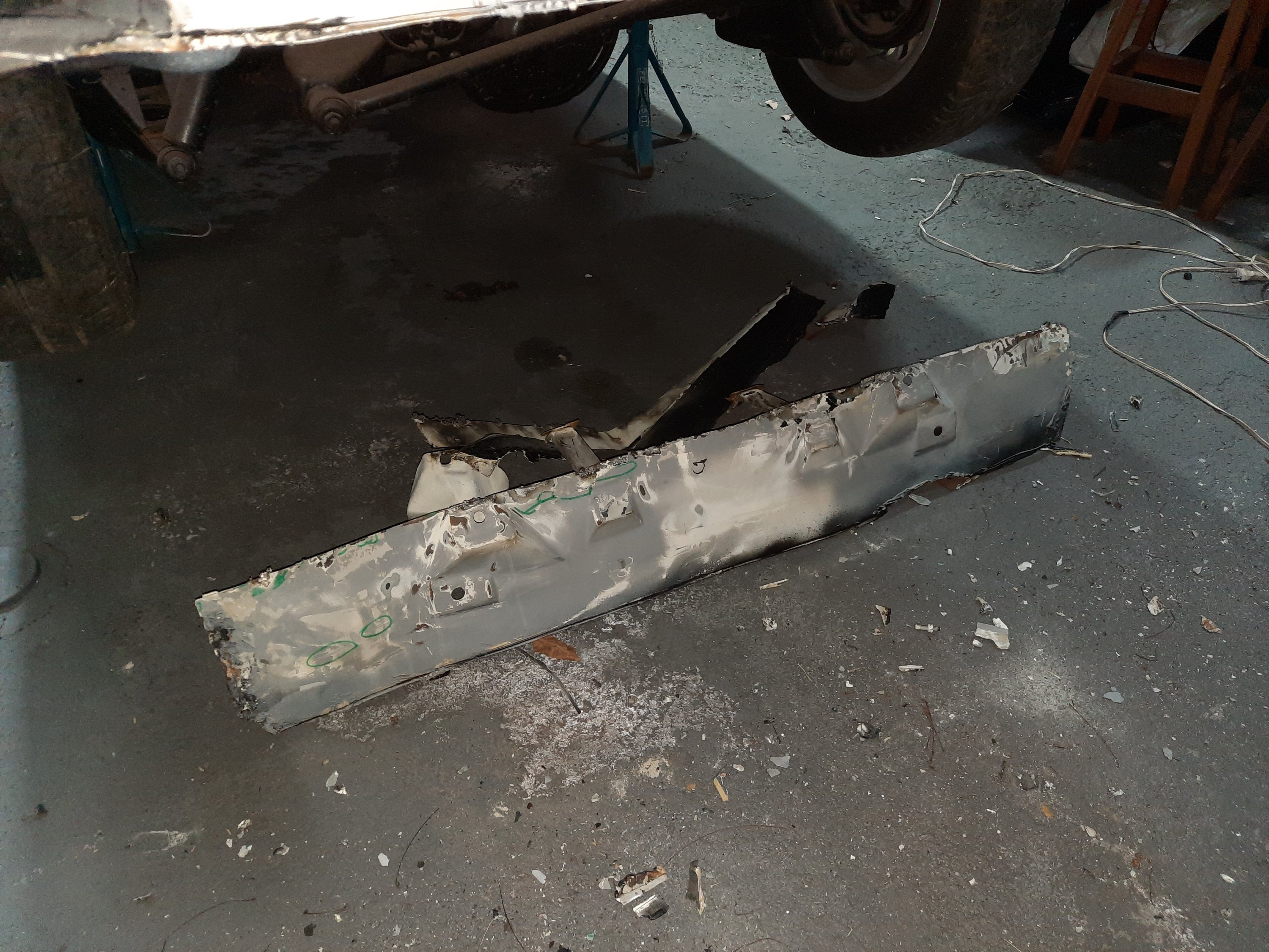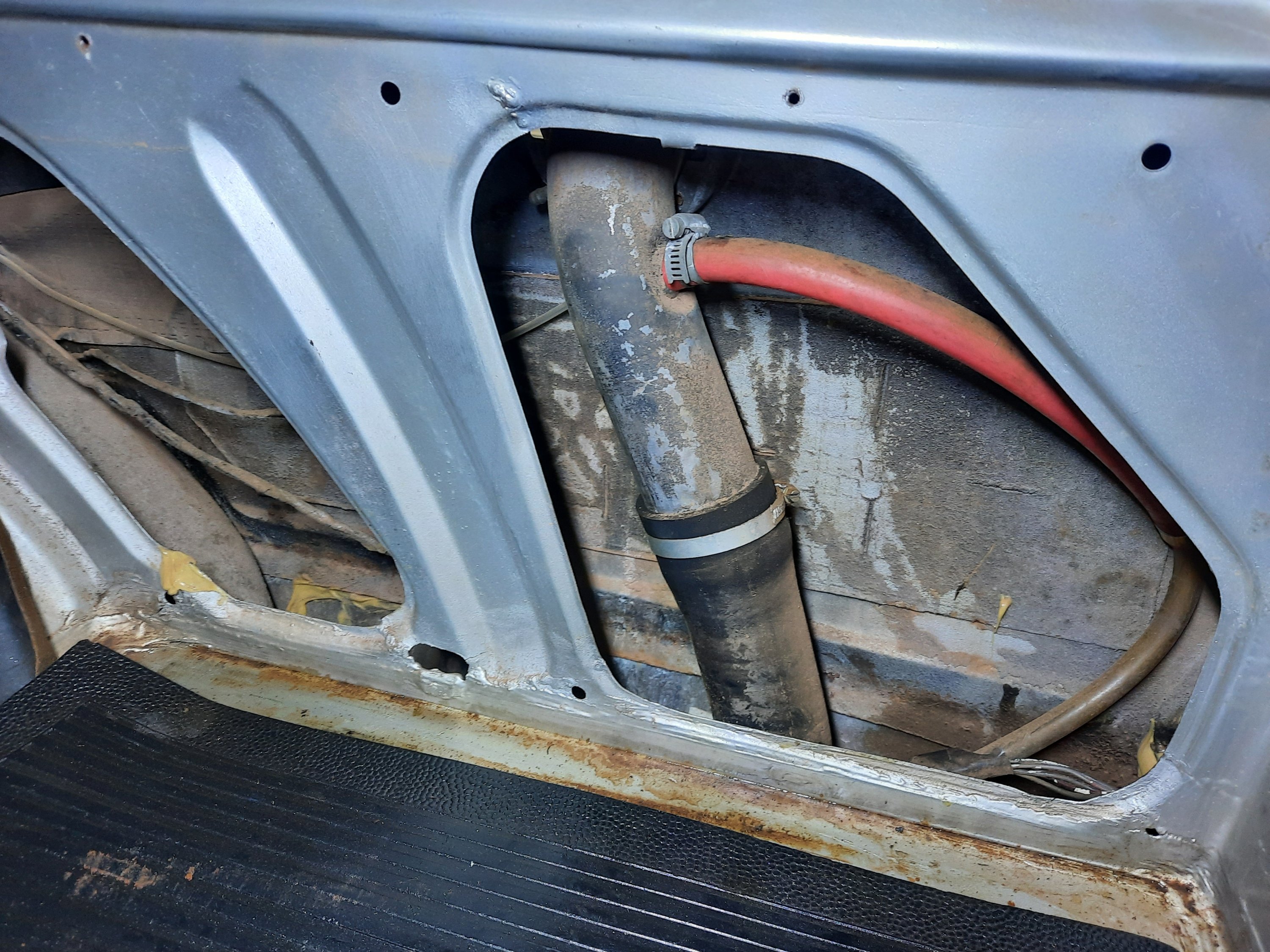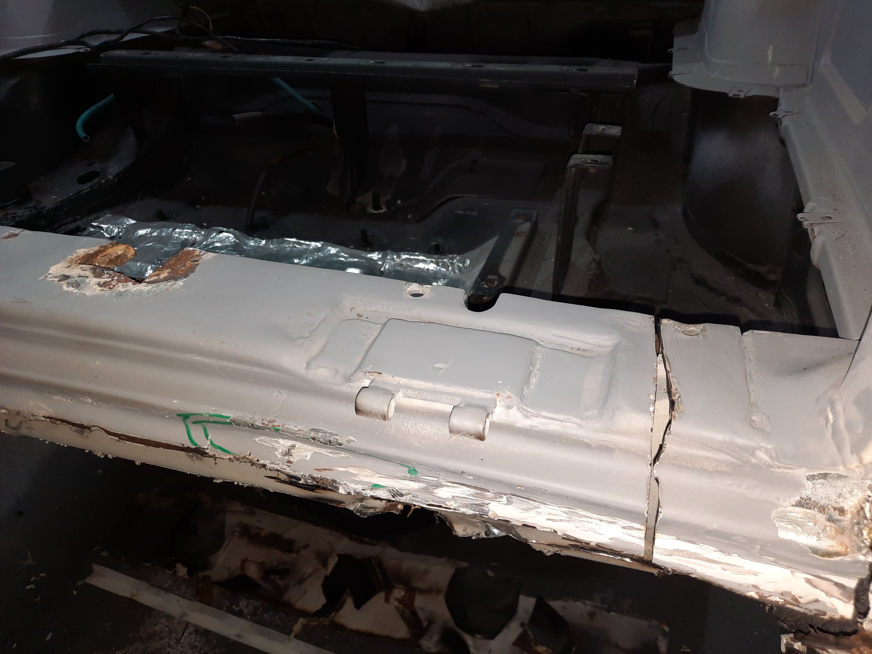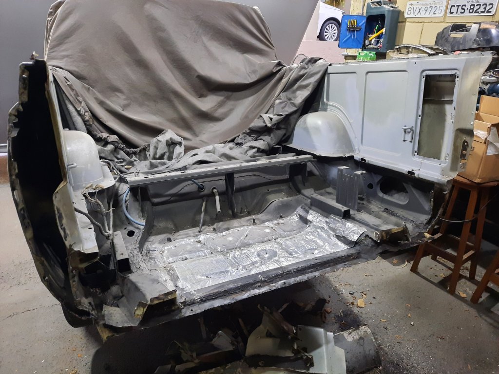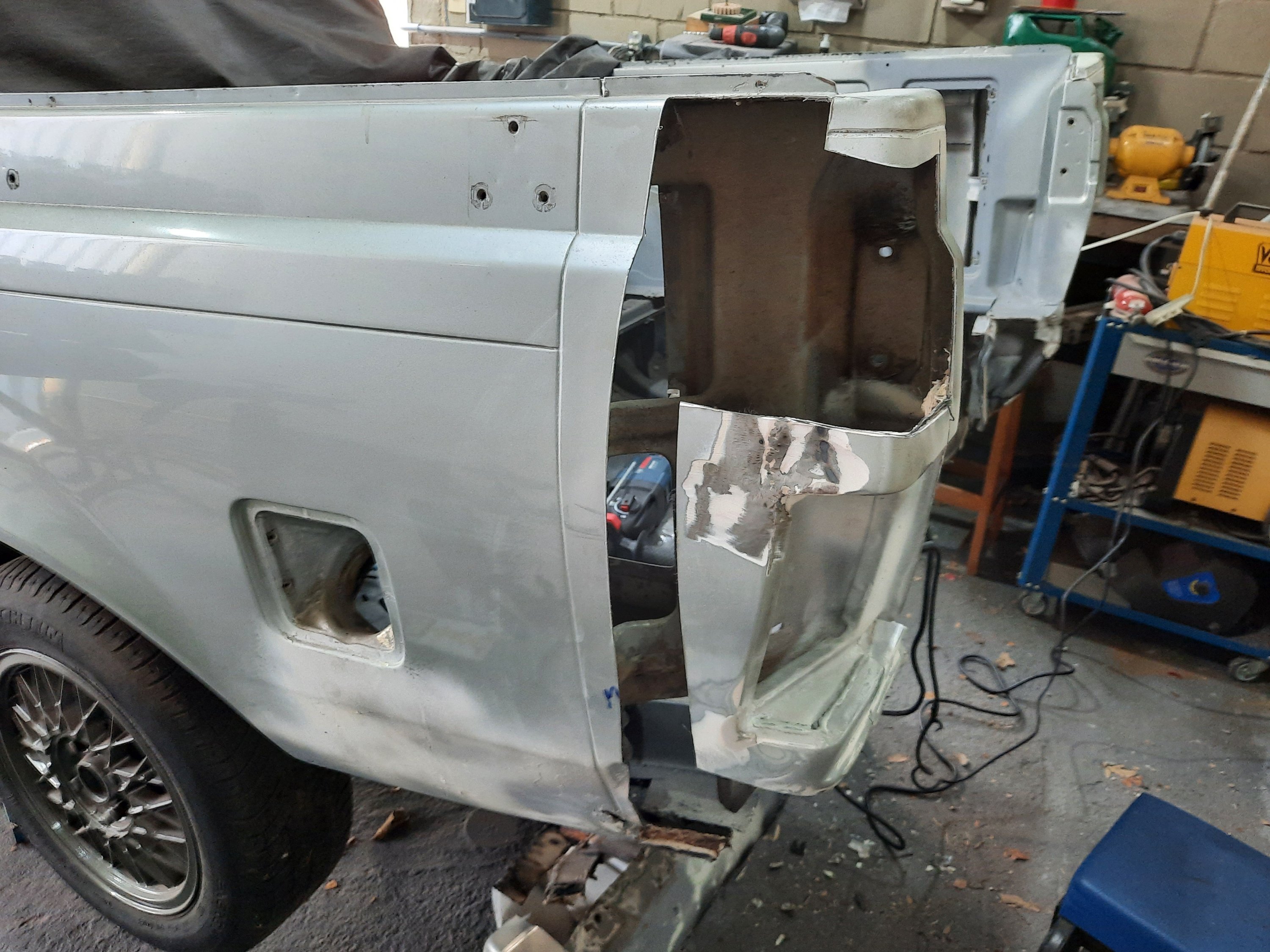 Teoricamente seriam apenas o painel traseiro interno e o externo, mas …. eu sabia que as laterais já haviam sido consertadas com massa (na época que usava a Chevy diariamente), devido a ferrugem, então…. mais cortes!!!
