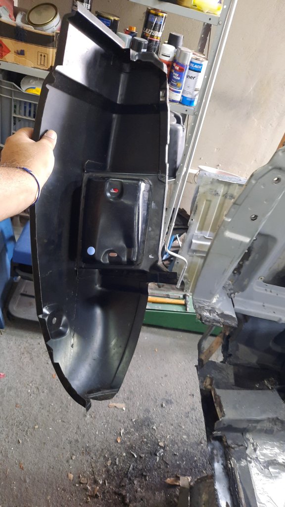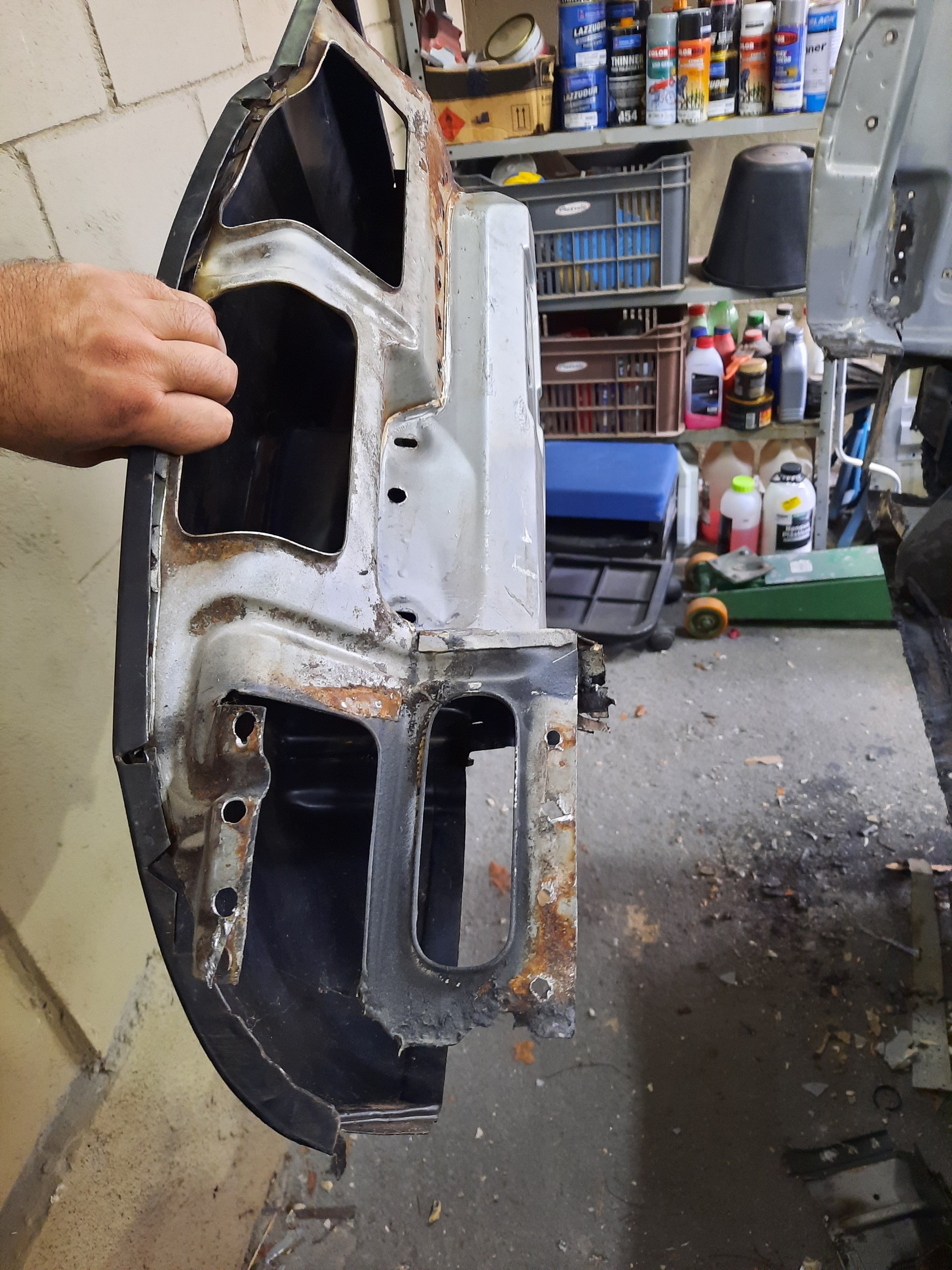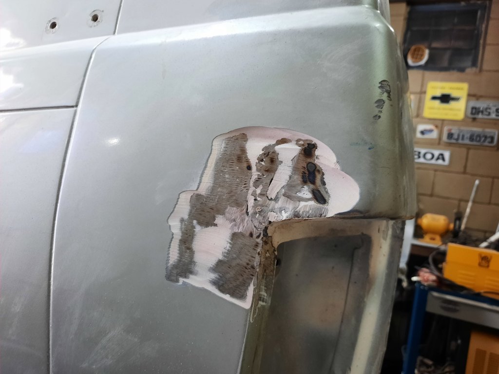 As vezes dá mais trabalho do que você imagina e exige mais força física do que parece, mas uma vez começado, não dá pra desistir!!!Pontos de solda ocultos, um profissional já sabe onde eles ficam, mas eu só encontrei quando as peças não se soltaram e comecei a olhar com mais atenção. Finalmente fora do carro e “testando” a peça usada numa “casca” nova original de estoque antigo Estas são apenas as chapas externas para troca, por isso tentei desmontar as estruturas internas sem estragar muito, caso precise destas peças no futuro. Outra opção que existiu eram estas peças que tem a chapa externa “casca” e a estrutura interna, optei em instalar estas e deixar tudo novo