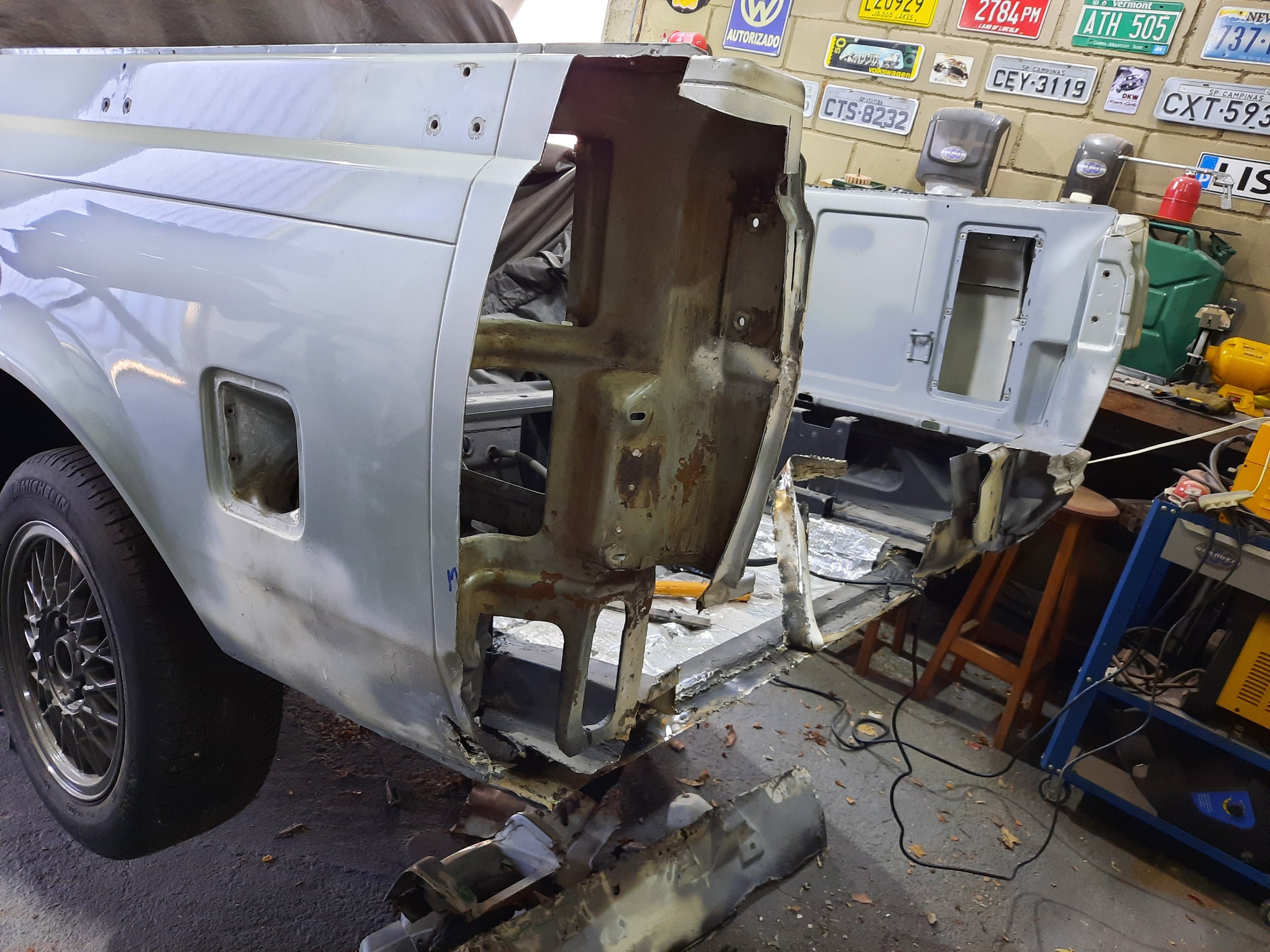 O próximo passo é arrumar um espaço na agenda do Felipe para ele vir soldar com a MIG com Gás dele aqui na Garagem 150. (mesmo eu tendo uma Mig sem gás, prefiro não arriscar por estar trocando partes internas estruturais da traseira.