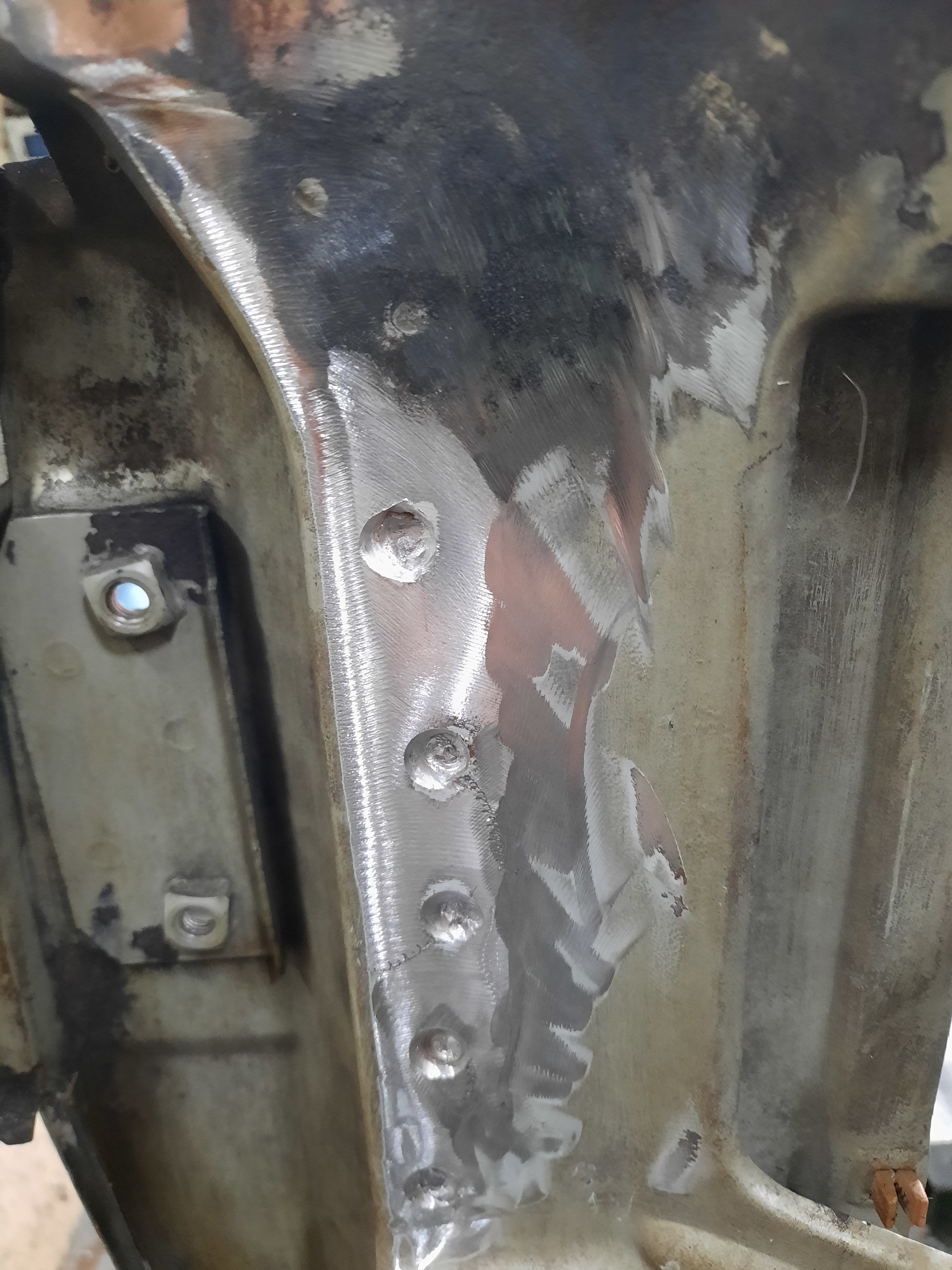As vezes os pontos de solda estão “invisíveis”, a dica é “limpar” a região, eu usei um disco tipo “flap” na esmerilhadeira.